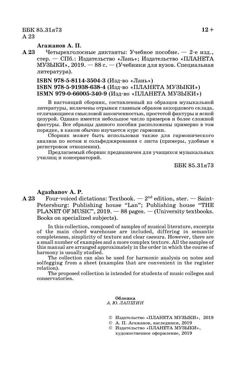 Сборник может быть использован также для гармонического анализа по нотам и сольфеджирования с листа (примеры, удобные в регистровом отношении).