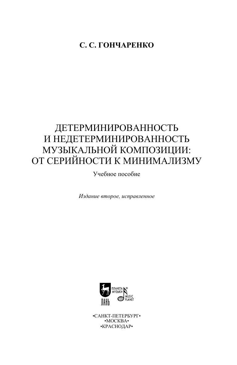 Учебное пособие доктора искусствоведения, профессора Светланы Сергеевны Гончаренко освещает конструктивные и динамические возможности репетитивного метода, апробированного в творчестве композиторов-минималистов. Показаны его связь и существенные различия с додекафонией нововенской школы. Пособие адресовано преподавателям и студентам высших учебных заведений, а также всем интересующимся вопросами современной музыки. The textbook by Svetlana Sergeevna Goncharenko, Doctor of Art History, Professor highlights the constructive and dynamic possibilities of the repetitivemethods, tested in the works of minimalist composers. The author shows its сonnection and significant differences with the dodecaphony of the Second Viennese school. The textbook is intended for students and teachers of higher schools, as well as for anyone interested in topics of contemporary music.