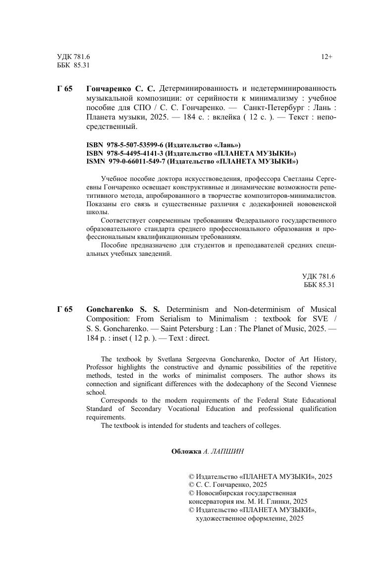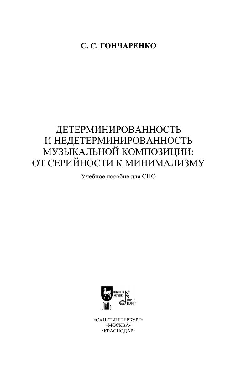 Учебное пособие доктора искусствоведения, профессора Светланы Сергеевны Гончаренко освещает конструктивные и динамические возможности репетитивного метода, апробированного в творчестве композиторов-минималистов. Показаны его связь и существенные различия с додекафонией нововенской школы Соответствует современным требованиям Федерального государственного образовательного стандарта среднего профессионального образования и профессиональным квалификационным требованиям. Пособие предназначено для студентов и преподавателей средних специальных учебных заведений. The textbook by Svetlana Sergeevna Goncharenko, Doctor of Art History, Professor highlights the constructive and dynamic possibilities of the repetitive methods, tested in the works of minimalist composers. The author shows its connection and significant differences with the dodecaphony of the Second Viennese school. Corresponds to the modern requirements of the Federal State Educational Standard of Secondary Vocational Education and professional qualification requirements. The textbook is intended for students and teachers of colleges.