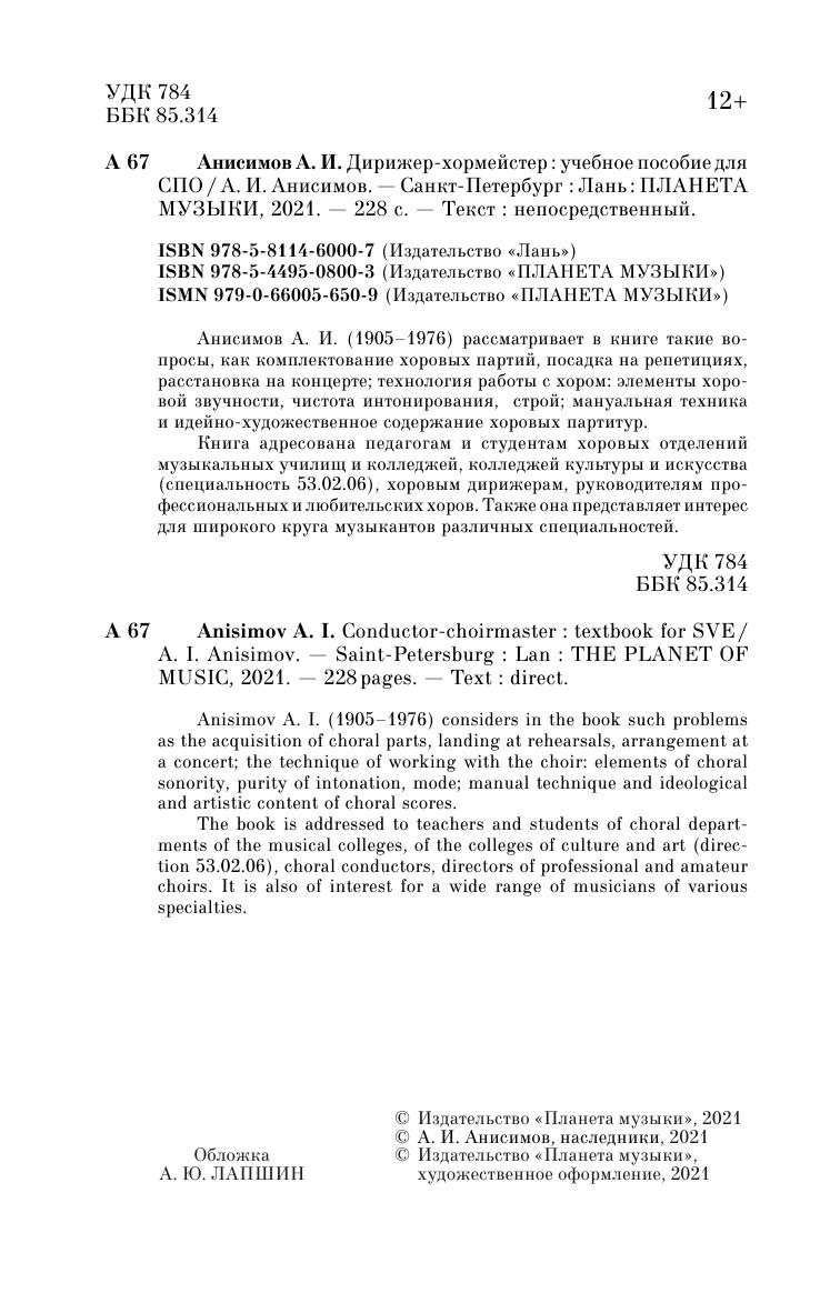Книга адресована педагогам и студентам хоровых отделений музыкальных училищ и колледжей, колледжей культуры и искусства (специальность 53.02.06), хоровым дирижерам, руководителям профессиональных и любительских хоров. Также она представляет интерес для широкого круга музыкантов различных специальностей.