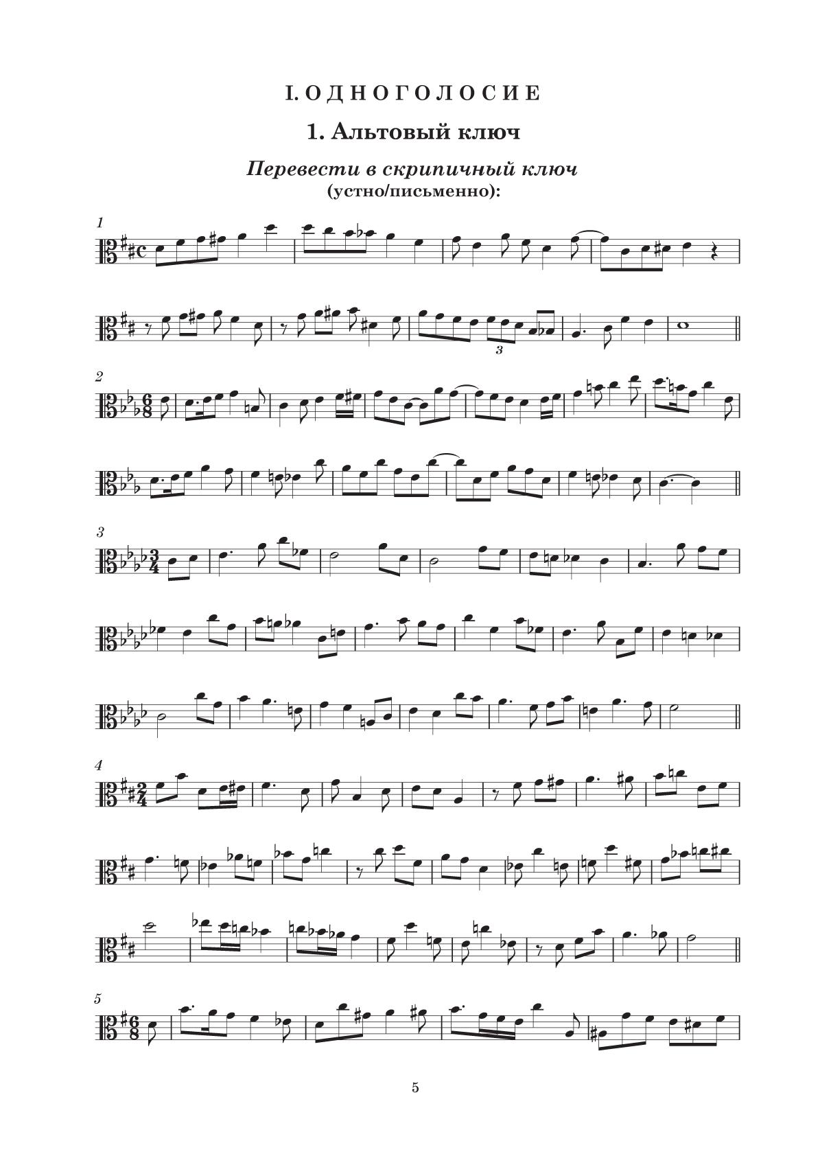 Элементарная теория музыки. Упражнения в ключах: альтовом, теноровом, скрипичном, басовом