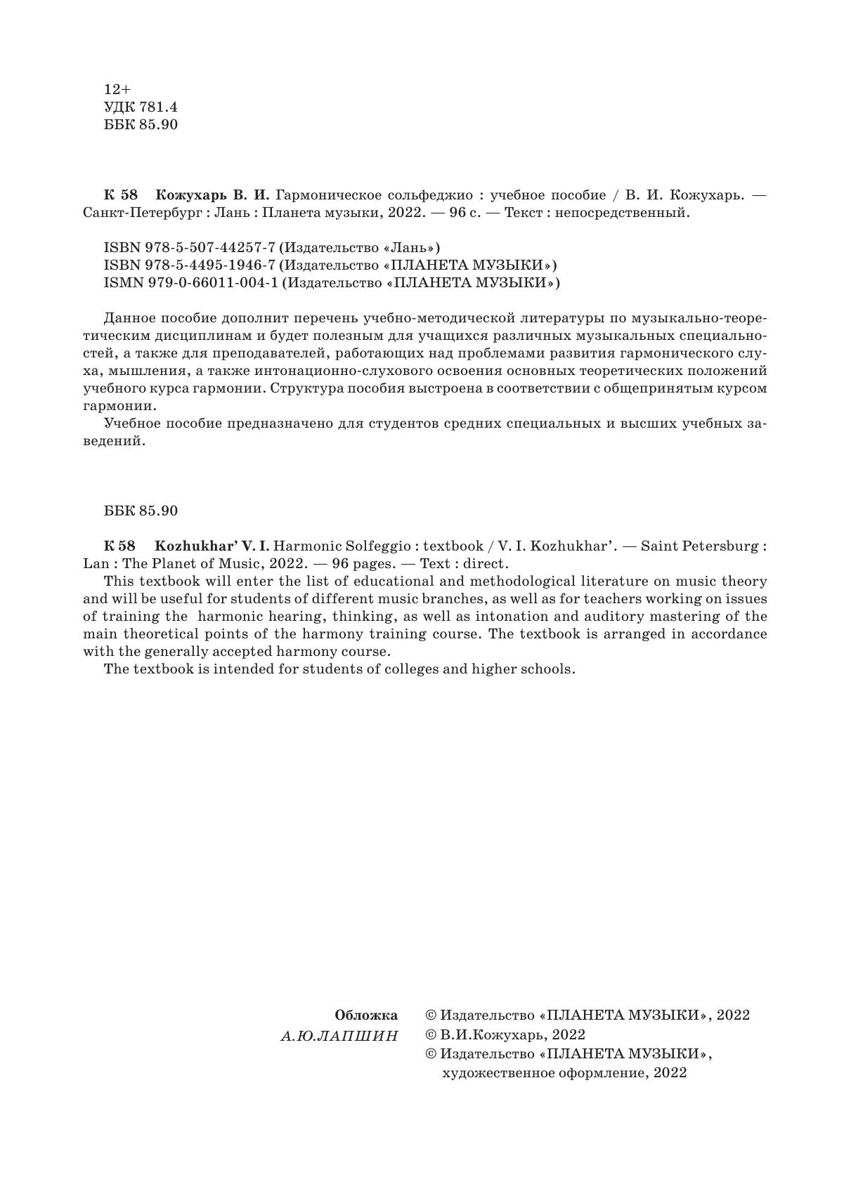 Данное пособие дополнит перечень учебно-методической литературы по музыкально-теоретическим дисциплинам и будет полезным для учащихся различных музыкальных специальностей, а также для преподавателей, работающих над проблемами развития гармонического слуха, мышления, а также интонационно-слухового освоения основных теоретических положений учебного курса гармонии. Структура пособия выстроена в соответствии с общепринятым курсом гармонии.
