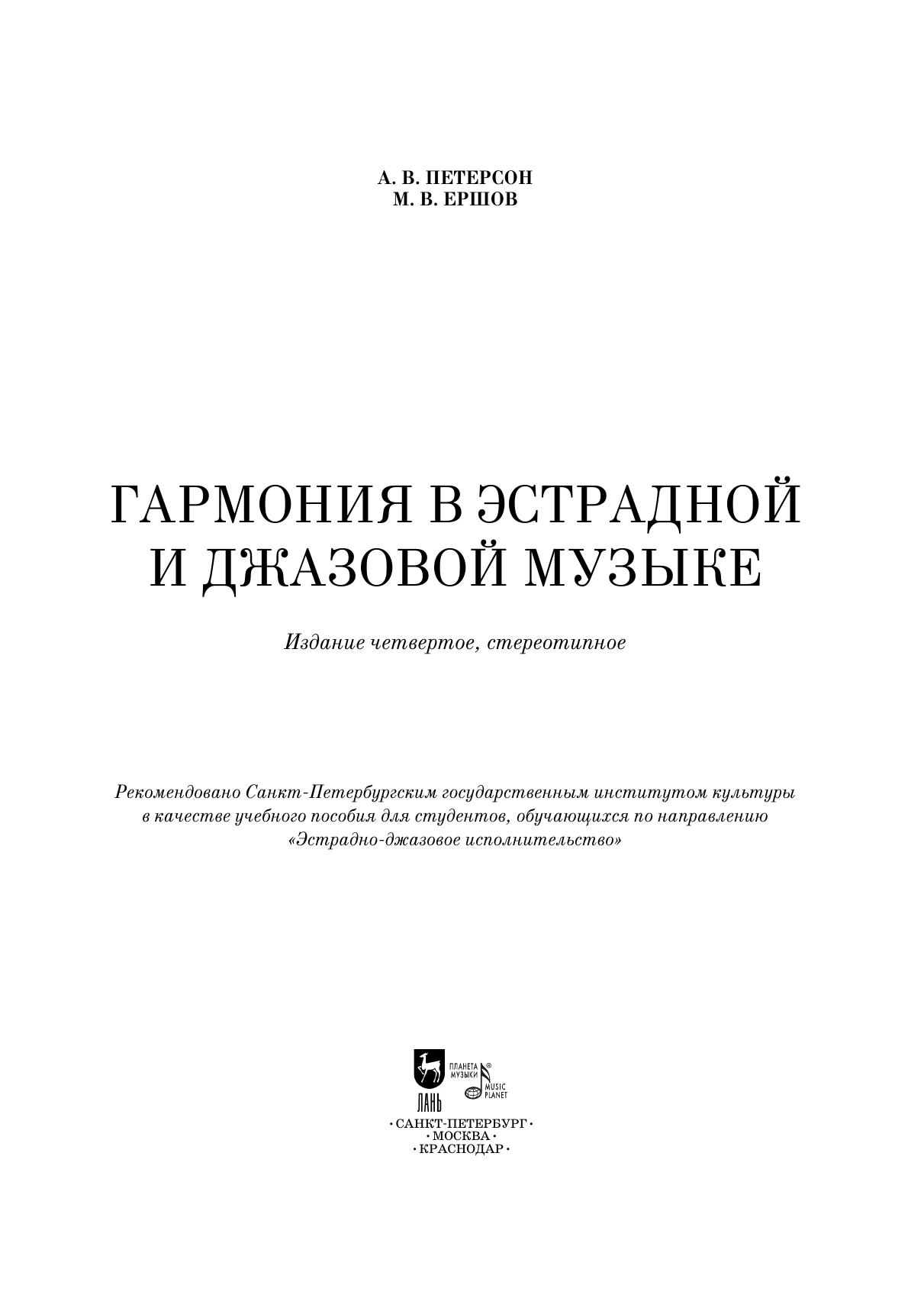 "Данное пособие адресовано студентам высших и среднеспециальных музыкальных учебных заведений, а также самому широкому кругу музыкантов. В первую очередь исполнителям на клавишных инструментах и гитаристам, играющим современную эстрадную музыку. Кроме этого материал, изложенный в этом пособии необходим аранжировщикам и музыкантам, которые хотят научиться импровизировать и сочинять музыку в современных эстрадных стилях. Особый интерес издание представляет для музыкантов, получивших академическое музыкальное образование, но не владеющих эстрадно-джазовым гармоническим языком.Книга состоит из двух частей. В первой части изложены основы эстрадно-джазовой гармонии, которые позволят исполнителям овладеть современным гармоническим языком и играть в любых эстрадных стилях. Вторая часть посвящена углублённому изучению современной эстрадно-джазовой гармонии и адресована джазовым музыкантам, импровизаторам, аранжировщикам и теоретикам современной музыки.Компакт-диск, идущий в комплекте с пособием, сделает обучение более продуктивным и интересным.