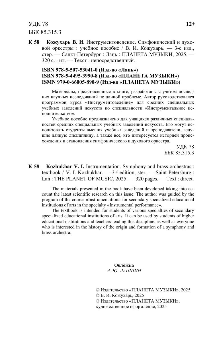 Материалы, представленные в книге, разработаны с учетом последних научных исследований по данной проблеме. Автор руководствовался программой курса «Инструментоведение» для средних специальных учебных заведений искусств по специальности «Инструментальное исполнительство». Учебное пособие предназначено для учащихся различных специальностей средних специальных учебных заведений искусств. Его могут использовать студенты высших учебных заведений и преподаватели, ведущие данную дисциплину, а также все, кто интересуется историей происхождения и становления симфонического и духового оркестра.