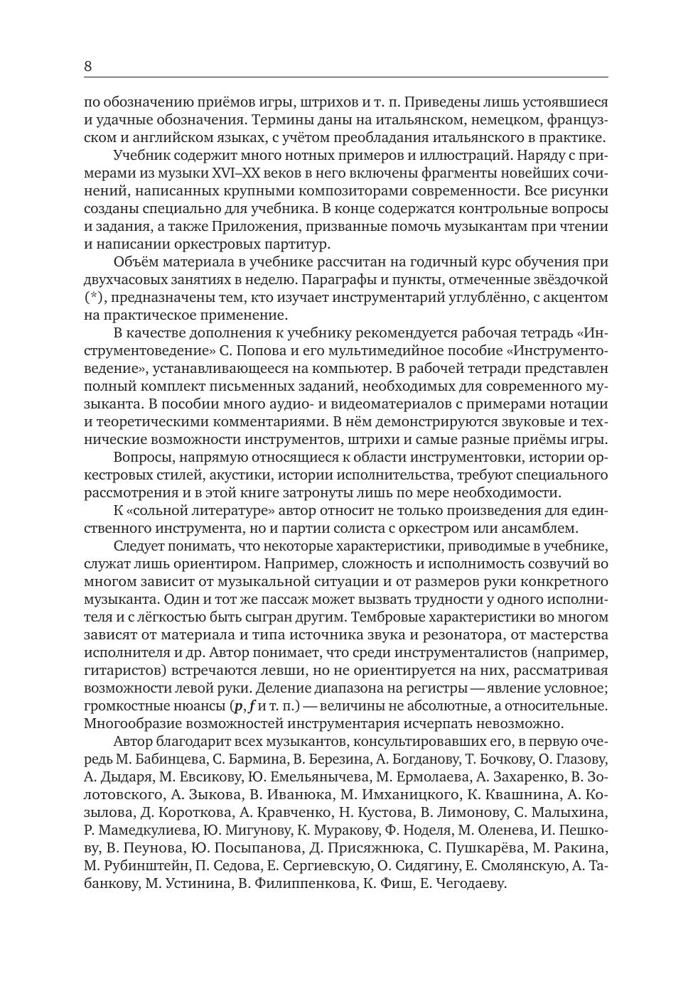 Учебник предназначен для студентов музыкальных вузов, в первую очередь для тех, кто обучается по направлениям подготовки (специальностям) «Композиция», «Художественное руководство оперно-симфоническим оркестром», «Музыковедение» и «Музыкальная звукорежиссура». Учебник может быть полезен всем музыкантам, особенно композиторам, преподавателям инструментоведения и студентам ссузов. Он рекомендован к использованию в музыкальных учебных заведениях. This textbook is intended for students of musical universities, primarily for those who study in the fi elds of training (specialties) “Composition”, “Artistic management of the symphonic orchestra”, “Musicology” and “Musical sound engineering”. The textbook may be useful for all musicians, especially for composers, teachers of instrumentation and students of colleges. It is recommended for use in music schools.