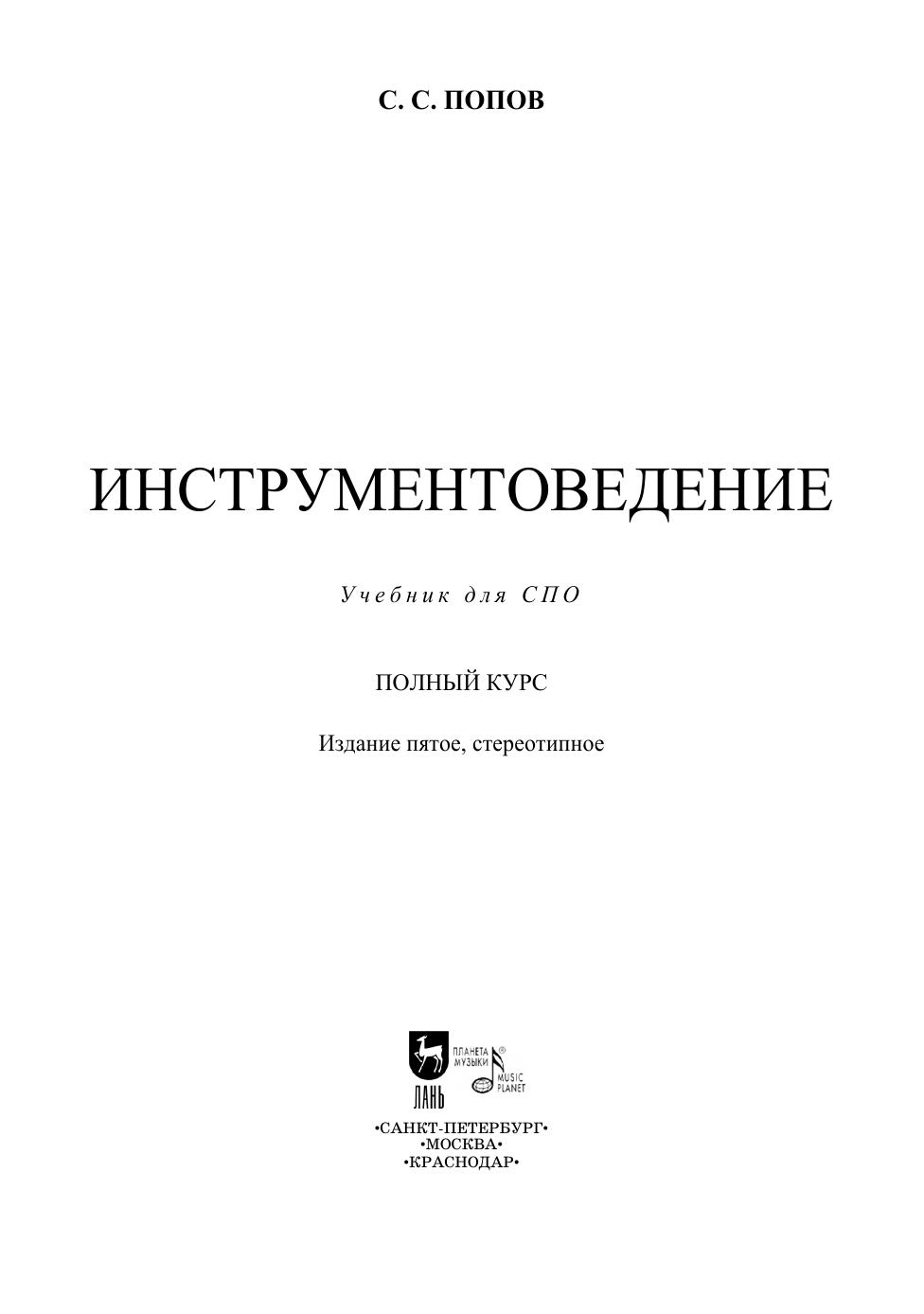 Настоящий учебник предназначен для студентов средних специальных учебных заведений, изучающих дисциплину «Инструментоведение», а также всем, кто интересуется музыкальным инструментарием. Соответствует современным требованиям Федерального государственного образовательного стандарта среднего профессионального образования и профессиональным квалификационным требованиям. This textbook is intended for students of colleges studying the discipline "Instrumental Studies", as well as all who are interested in musical instruments. Corresponds to the modern requirements of the Federal State Educational Standard of Secondary Vocational Education and professional qualification requirements.