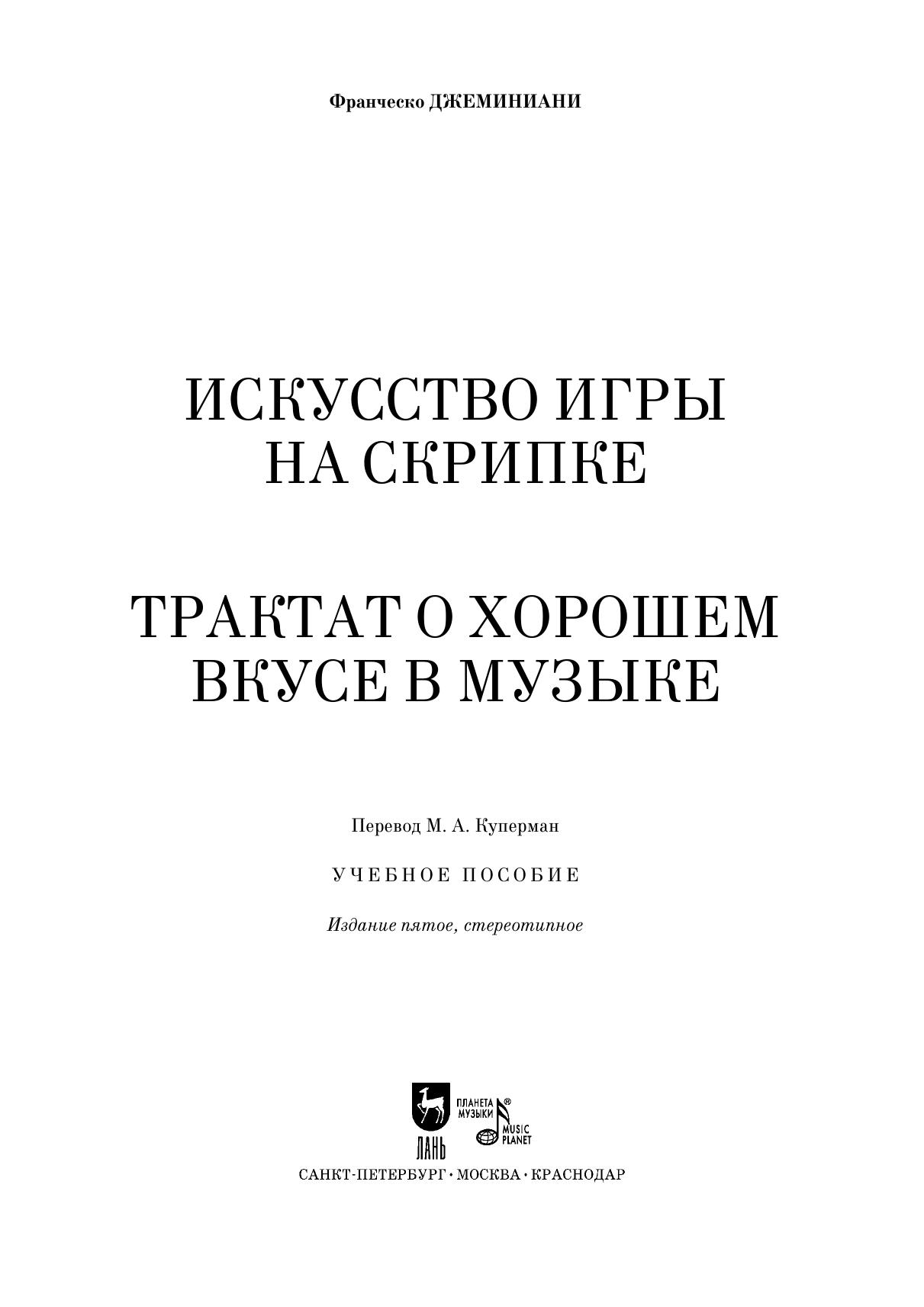 Искусство игры на скрипке. Трактат о хорошем вкусе в музыке