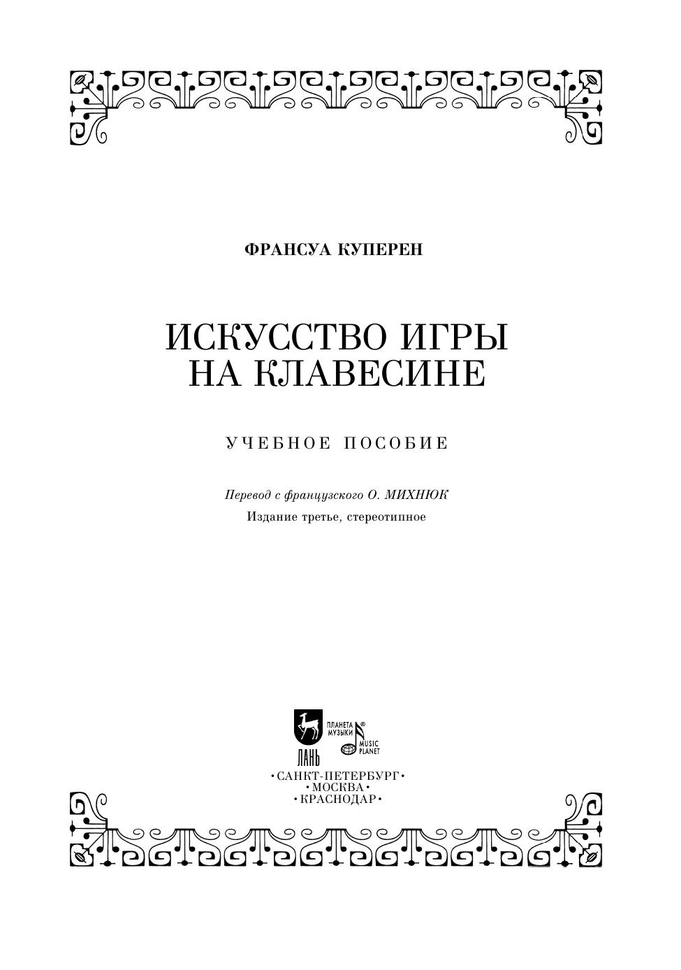 F. Couperin was a French composer, organist and harpsichord player. His treatise is a guide for students who want to learn to play the harpsichord. The author gives a number of recommendations, which make it possible to master the harpsychord playing. Many of his advice, given in the treatise, are of current interest in modern performing practice, not only on the harpsichord, but also on other keyboard instruments.
