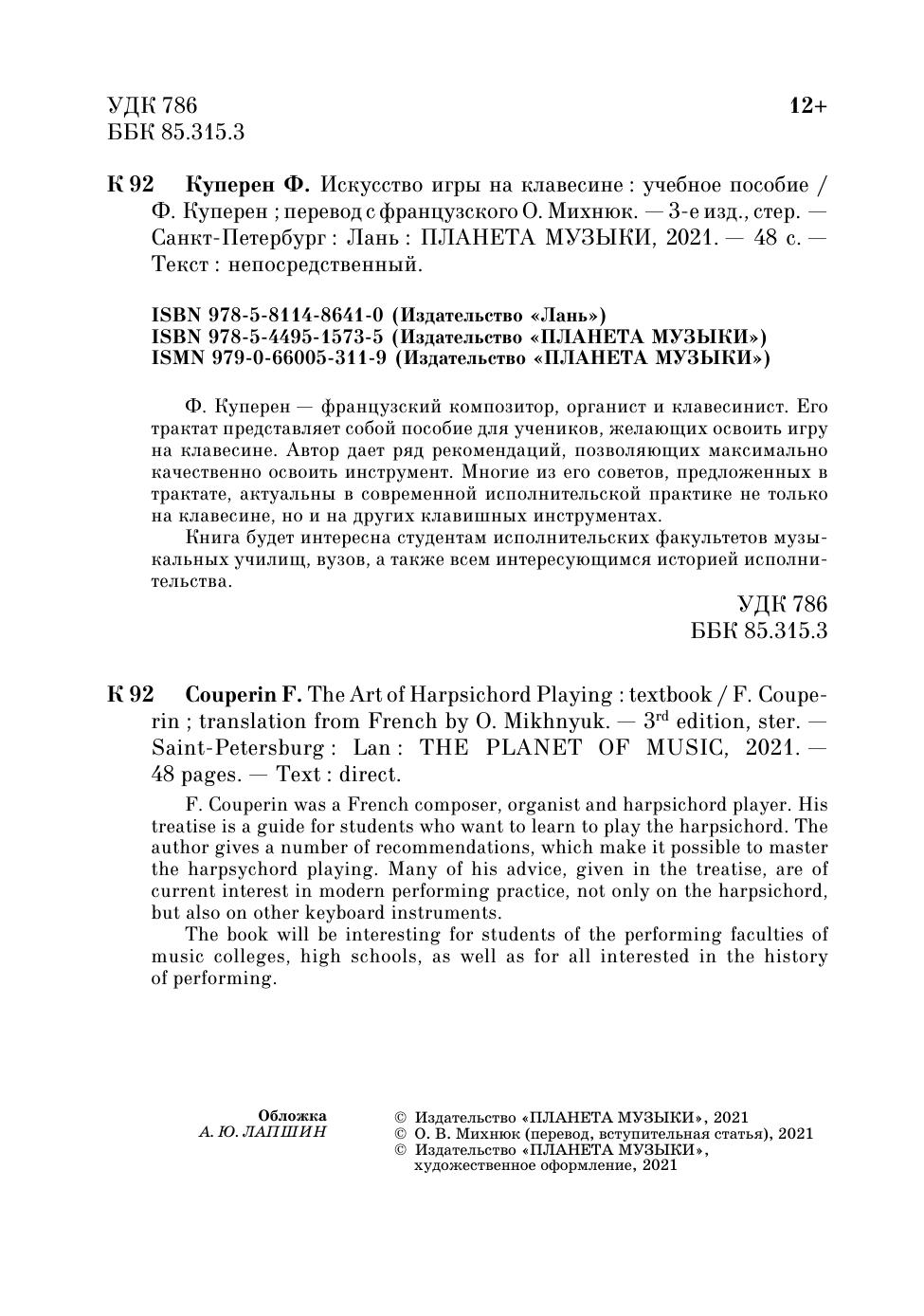 The book will be interesting for students of the performing faculties of music colleges, high schools, as well as for all interested in the history of performing.