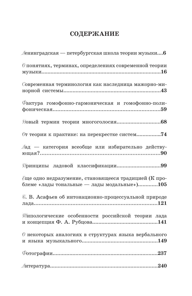 В сборник вошли статьи разных лет по проблемам теории музыки, лада и гармонии. Пособие рекомендовано музыковедам, студентам, преподавателям высших и средних учебных заведений и широкому кругу читателей, интересующихся историей отечественной музыкальной культуры.