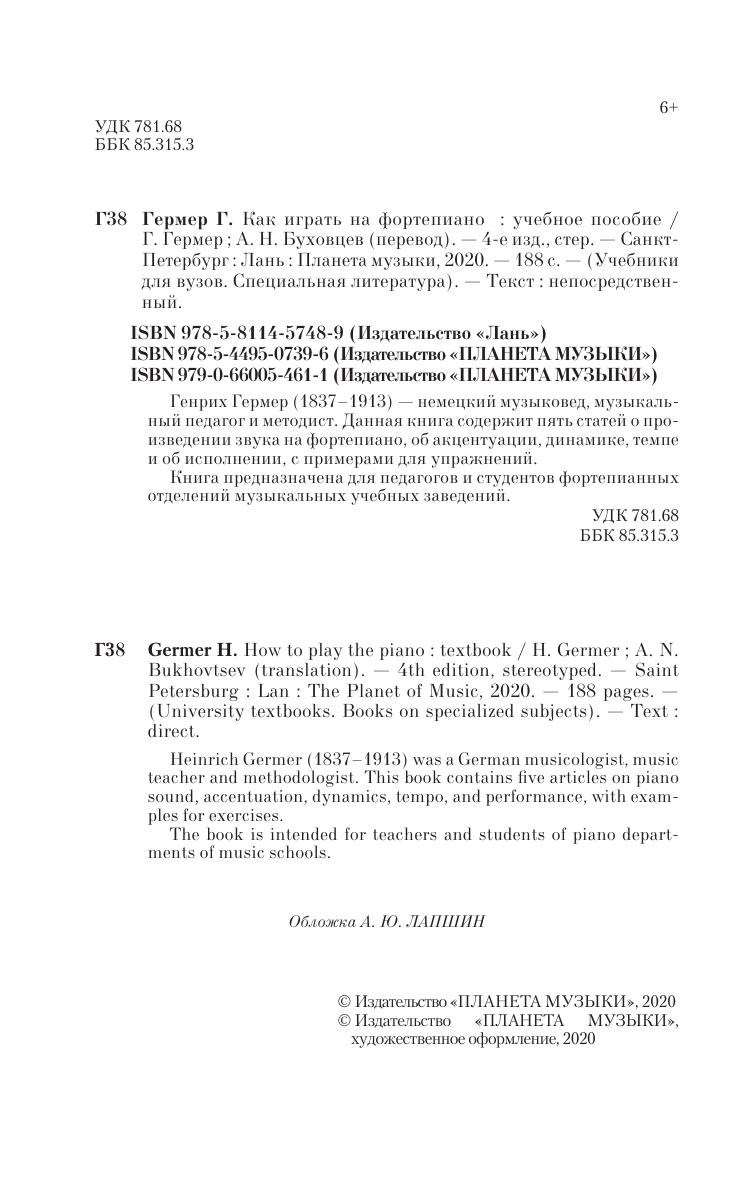 Генрих Гермер (1837–1913) — немецкий музыковед, музыкальный педагог и методист. Данная книга содержит пять статей о произведении звука на фортепиано, об акцентуации, динамике, темпе и об исполнении, с примерами для упражнений.