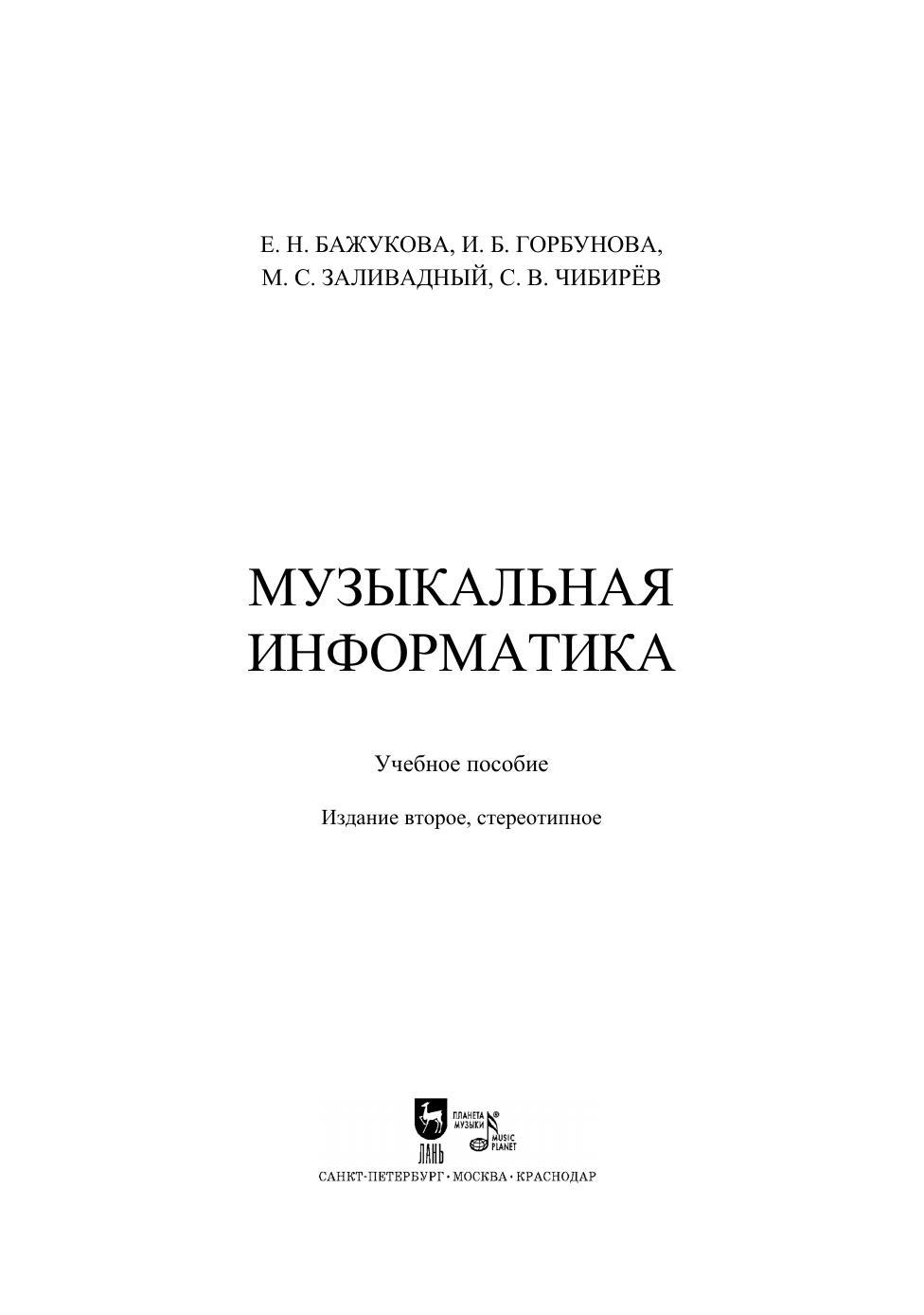 Учебное пособие предназначено для студентов высших учебных заведений и слушателей программ повышения квалификации и профессиональной переподготовки, изучающих дисциплину «Музыкальная информатика» и обучающихся по направлению музыкально-компьютерные технологии в образовании. Содержит информацию по следующим направлениям: предмет музыкальная информатика, рассмотрены грани взаимодействия музыки-математики-информатики в историческом аспекте, музыкальный звук его физическая основа и технология цифровой обработки с помощью музыкально-компьютерных технологий (МКТ) как синтезаторы музыкального звука, программное обеспечение профессиональной деятельности педагогов-музыкантов. The textbook is intended for students of higher schools and students of advanced training and professional retraining programs studying the discipline “Musical Informatics” and studying the sphere of music and computer technologies in education. It contains information on the following: the subject of musical informatics, the ways of interaction of music, mathematics and informatics in the historical aspect are considered, musical sound, its physical basis and digital processing technology using music-computer technologies (MCT) as musical sound synthesizers, software for the professional activities of music teachers.