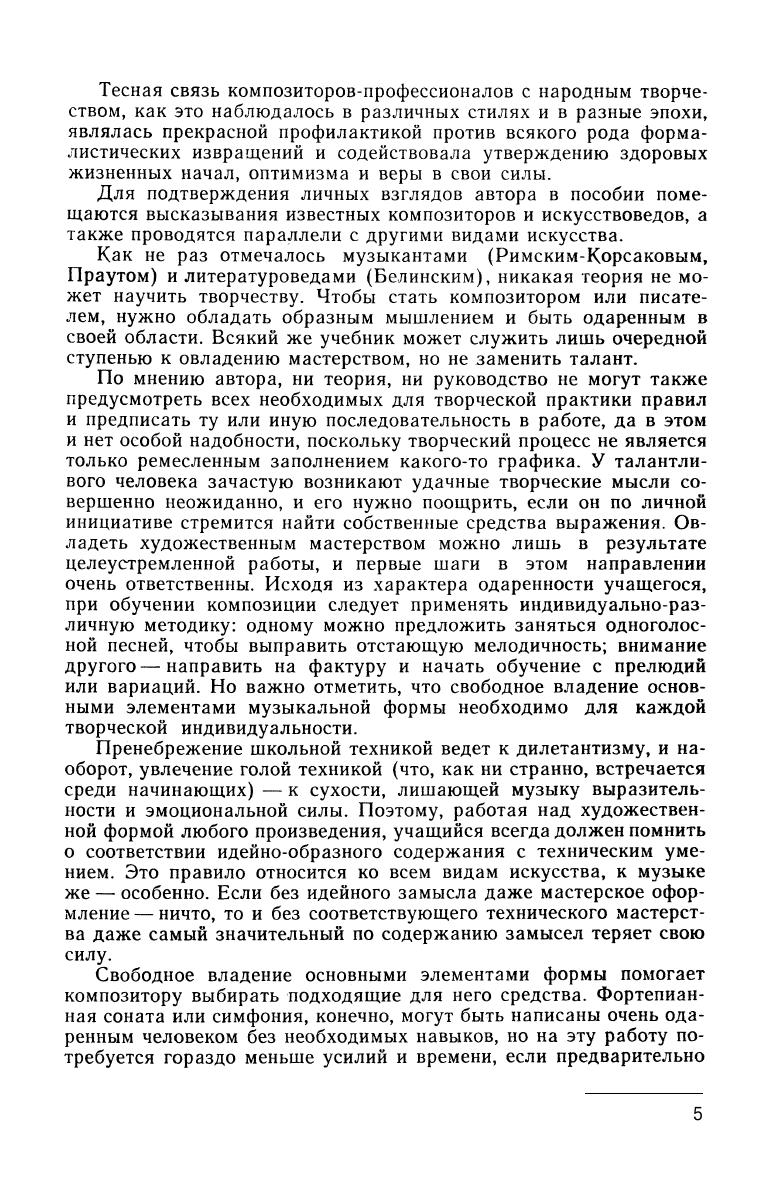 В пособии приводятся самые необходимые сведения об эволюции музыкальной формы, что очень важно для обоснования правил музыкальной грамматики. Отступления в область истории, которые делает автор (как показывает педагогическая практика), не только не мешают усвоению учебного материала, но, наоборот, вооружают начинающего композитора идейно и будят в нем творческую мысль. Кроме того, изучение различных стилей в их исторической преемственности способствует правильному отбору музыкально-выразительных средств для оформления художественных образов современности. Примеры в подавляющем большинстве случаев заимствованы из произведений композиторов-классиков. Особое внимание в них уделяется структурно-функциональному строению музыкальной речи. Масштабные схемы использованы довольно широко, так как цифровые данные дают наглядное представление о структуре художественной формы. Образцам народного творчества отводится значительное место, здесь представлены преимущественно песенные жанры, которые служат и, очевидно, всегда будут служить лучшим доказательством правдивого развития музыкальной мысли. Учебное пособие предназначено для начинающих музыкантов, педагогов и студентов музыкальных училищ и вузов.