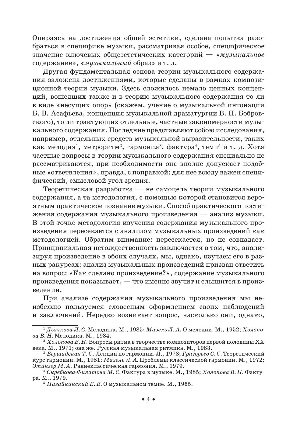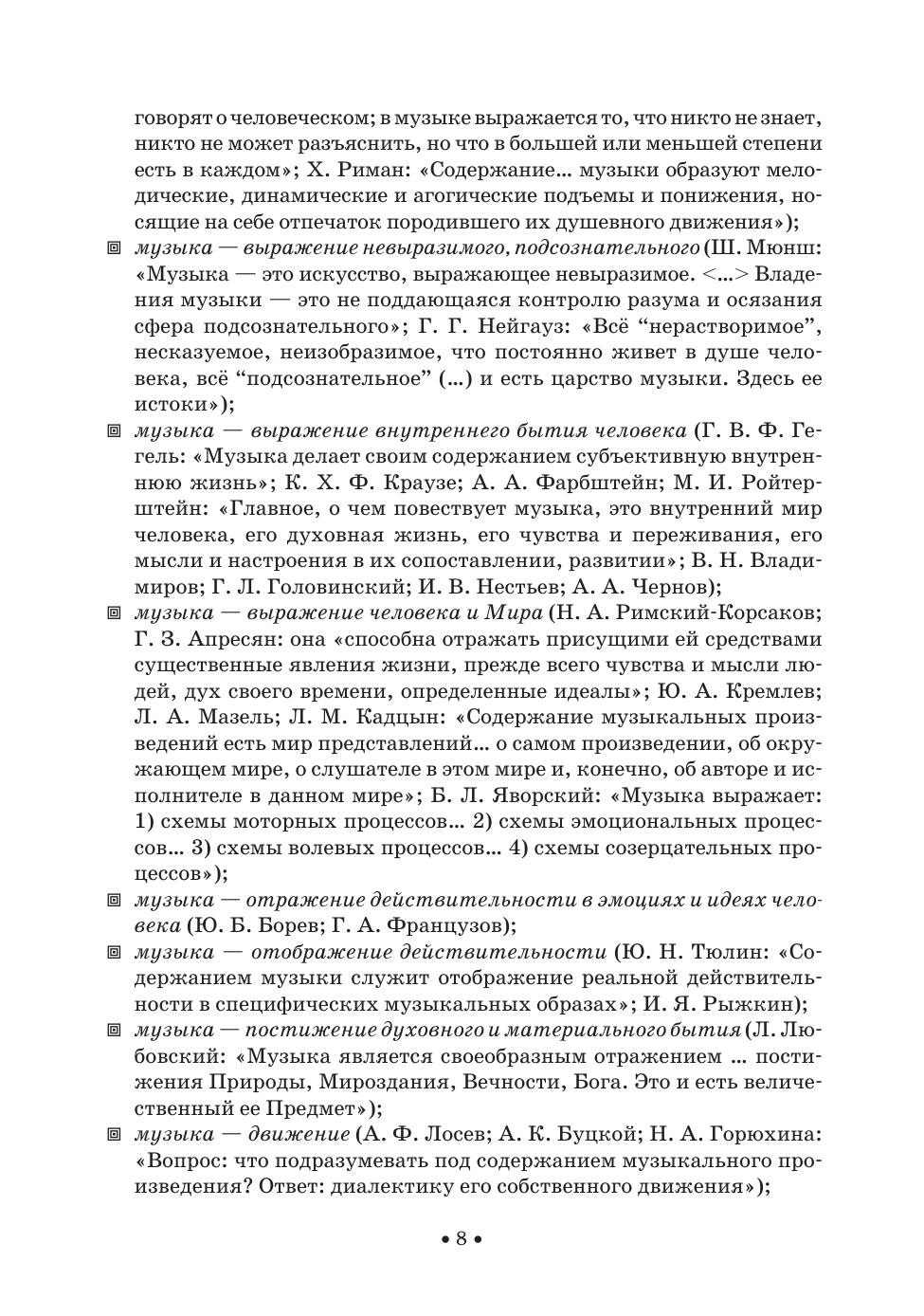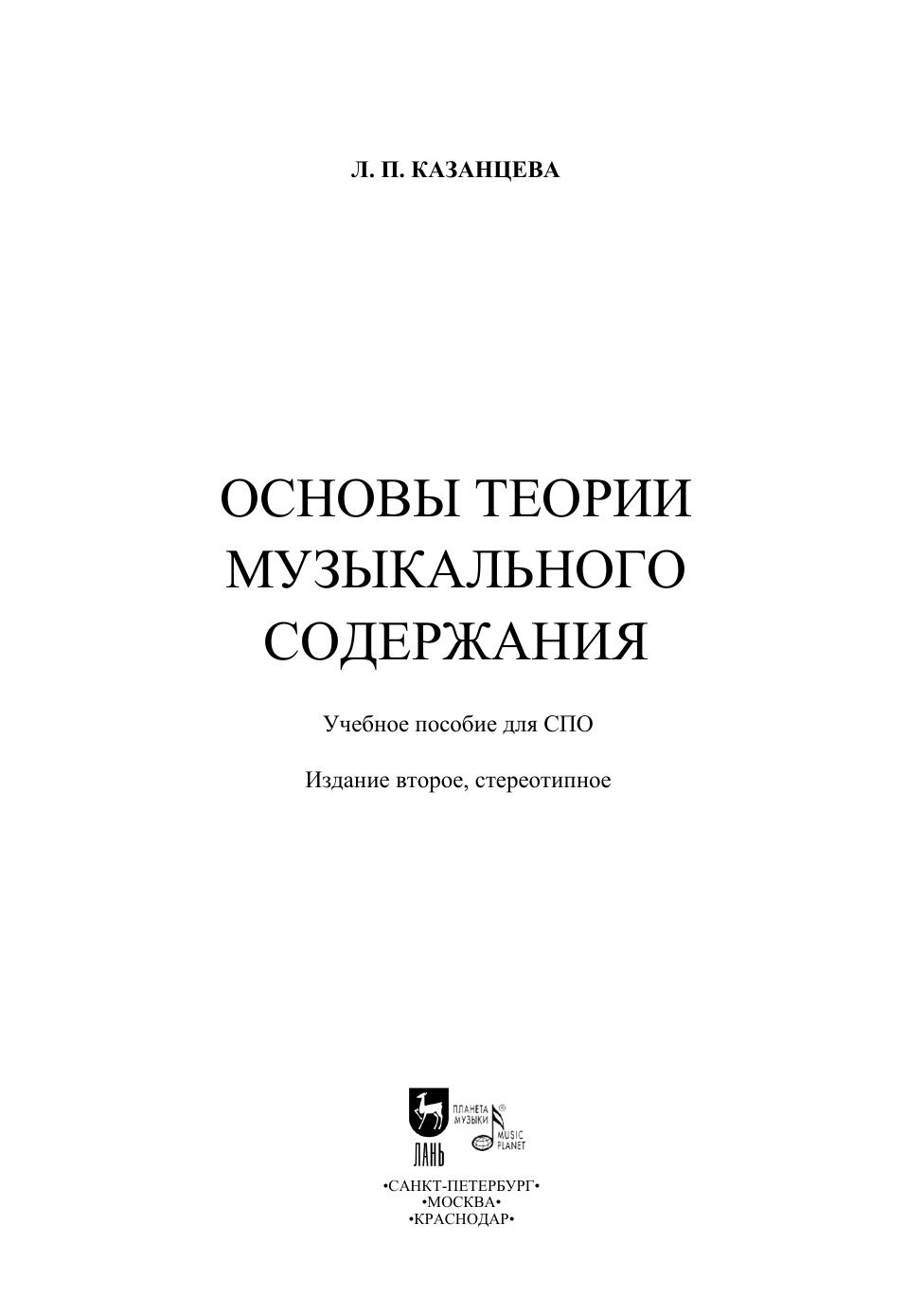 Издание представляет собою материал курса «Теория музыкального содержания». В нем рассматриваются основные понятия этой теории: тон, средства музыкальной выразительности, интонация, музыкальный образ, пространство и время в музыке, музыкальная драматургия, тема и идея, автор в музыкальном содержании. Соответствует современным требованиям Федерального государственного образовательного стандарта среднего профессионального образования и профессиональным квалификационным требованиям. Для студентов средних специальных учебных заведений, музыкантов-профессионалов и читателей, интересующихся проблемами музыки. The edition represents the content of the subject “The musical content theory”. It deals with the fundamentals of this theory: tone, means of musical expression, intonation, musical image, space and time in music, musical dramaturgy, theme and idea, author in musical content. Corresponds to the modern requirements of the Federal State Educational Standard of Secondary Vocational Education and professional qualification requirements. For students of music higher schools and colleges, professional musicians and readers interested in music topics.