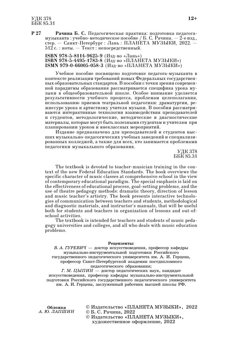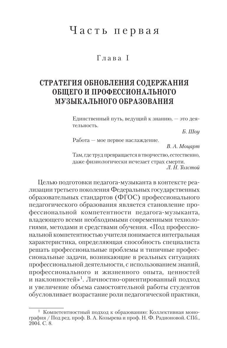 Учебное пособие посвящено подготовке педагога-музыканта в контексте реализации требований новых Федеральных государственных образовательных стандартов. В пособии с точки зрения современной парадигмы образования рассматривается специфика урока музыки в общеобразовательной школе. Особое внимание уделяется результативности учебного процесса, проблемам целеполагания, использованию приемов театральной педагогики: драматургии, режиссуре урока и артистизму учителя музыки. В пособии рассматриваются интерактивные технологии взаимодействия преподавателей и студентов, методологические, методические и диагностические материалы, которые могут быть полезными студентам и учителям при проектировании уроков и внеклассных мероприятий.Издание предназначено для преподавателей и студентов высших музыкально-педагогических учебных заведений и специализированных колледжей, а также для всех, кто занимается проблемами педагогики музыкального образования.