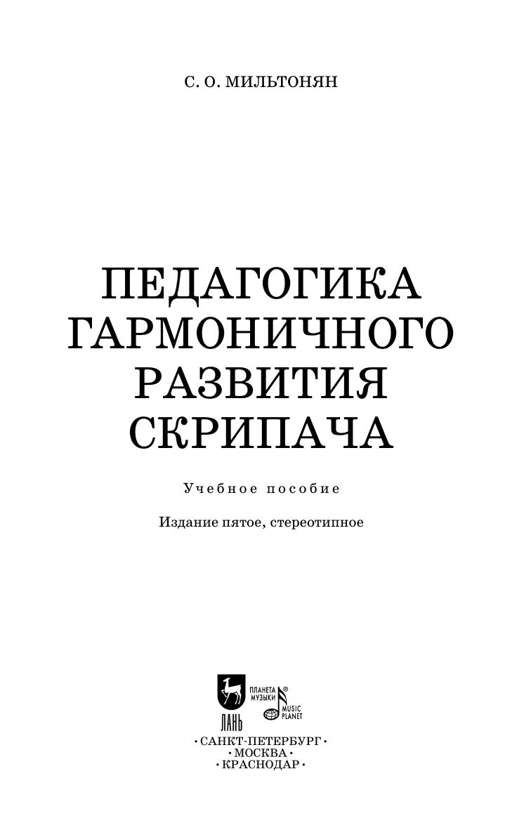 This book represents a scientific, methodological and practical study of a musician’s training. Basing on the data of modern philosophy, psychology and pedagogy, the author analyzes the advantages and disadvantages of the existing system of music education in Russia and builds a fundamentally new, promising model of musician’s harmonious training and education.
