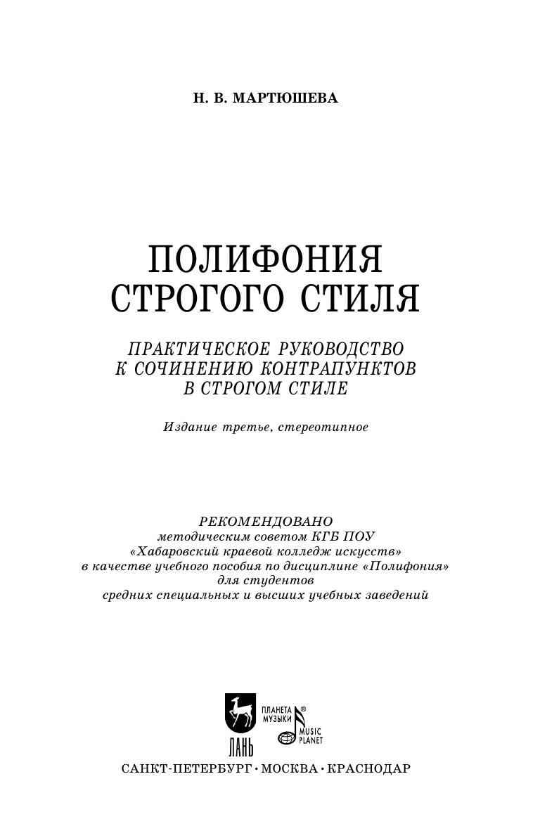 Полифония строгого стиля. Практическое руководство к сочинению контрапунктов в строгом стиле