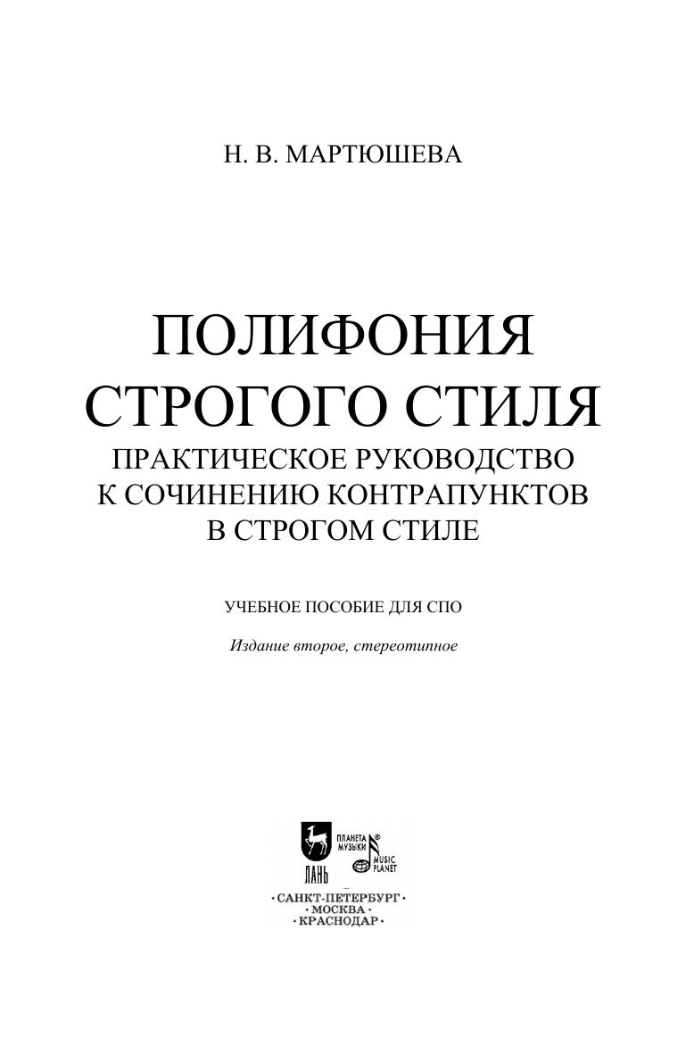 Полифония строгого стиля. Практическое руководство к сочинению контрапунктов в строгом стиле