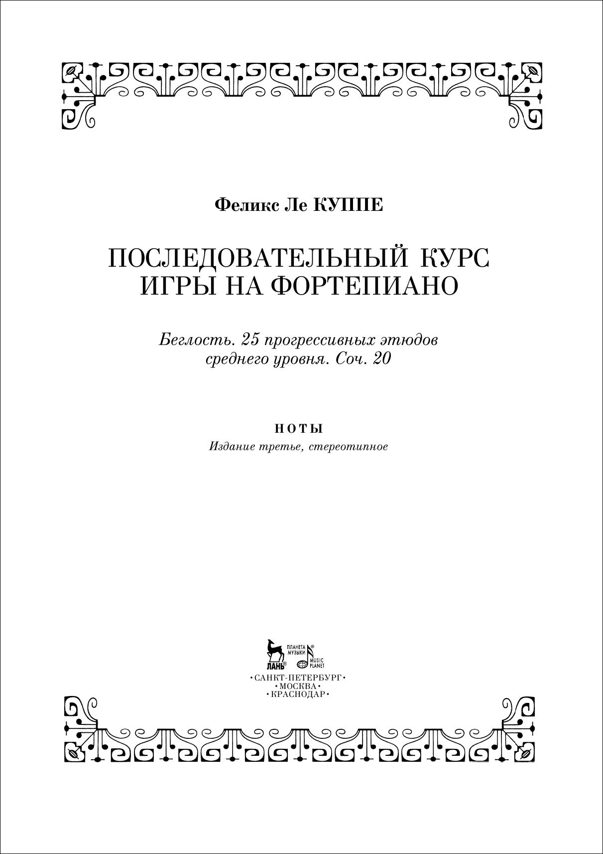 Последовательный курс игры на фортепиано. Беглость. 25 прогрессивных этюдов среднего уровня. Соч. 20