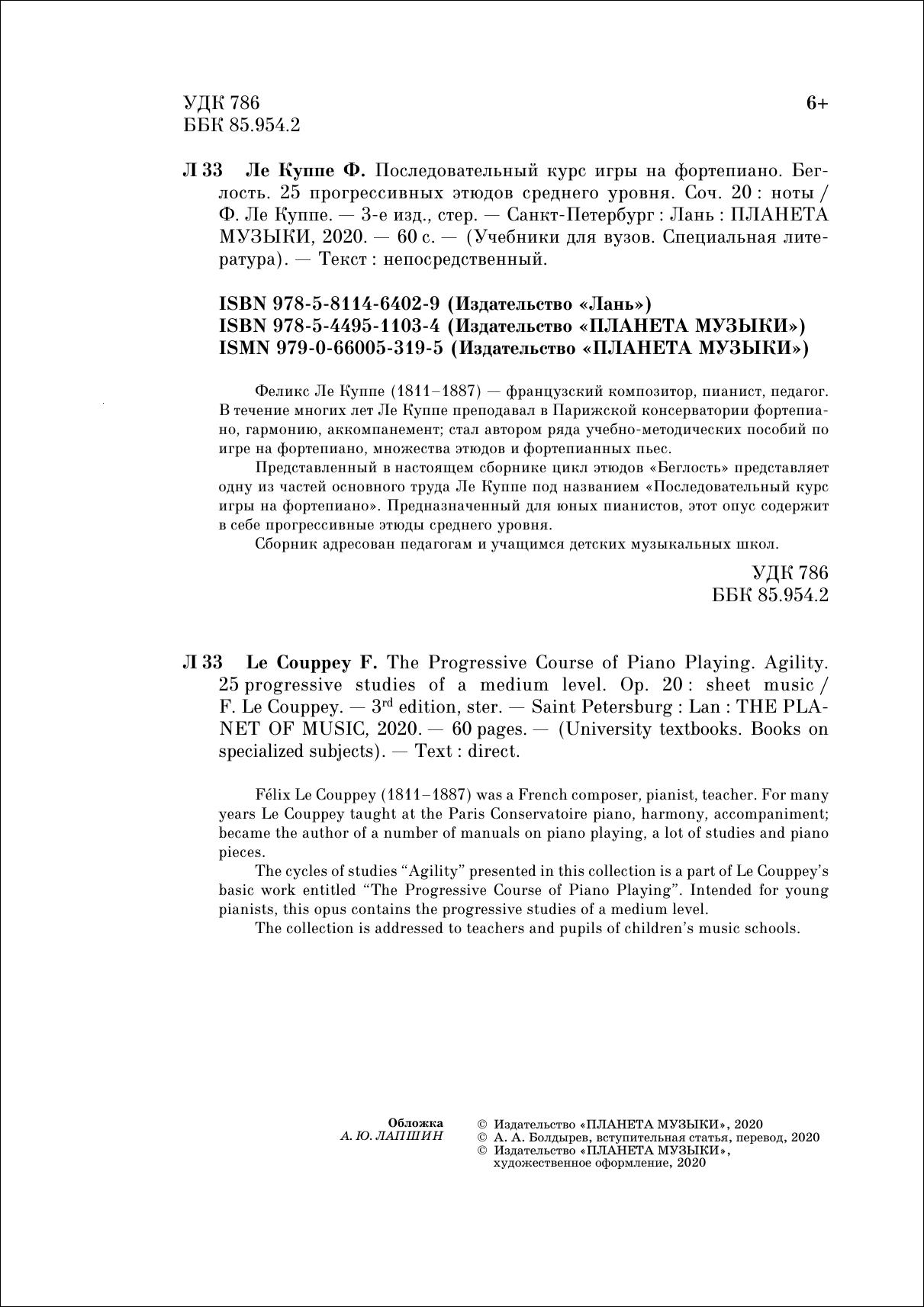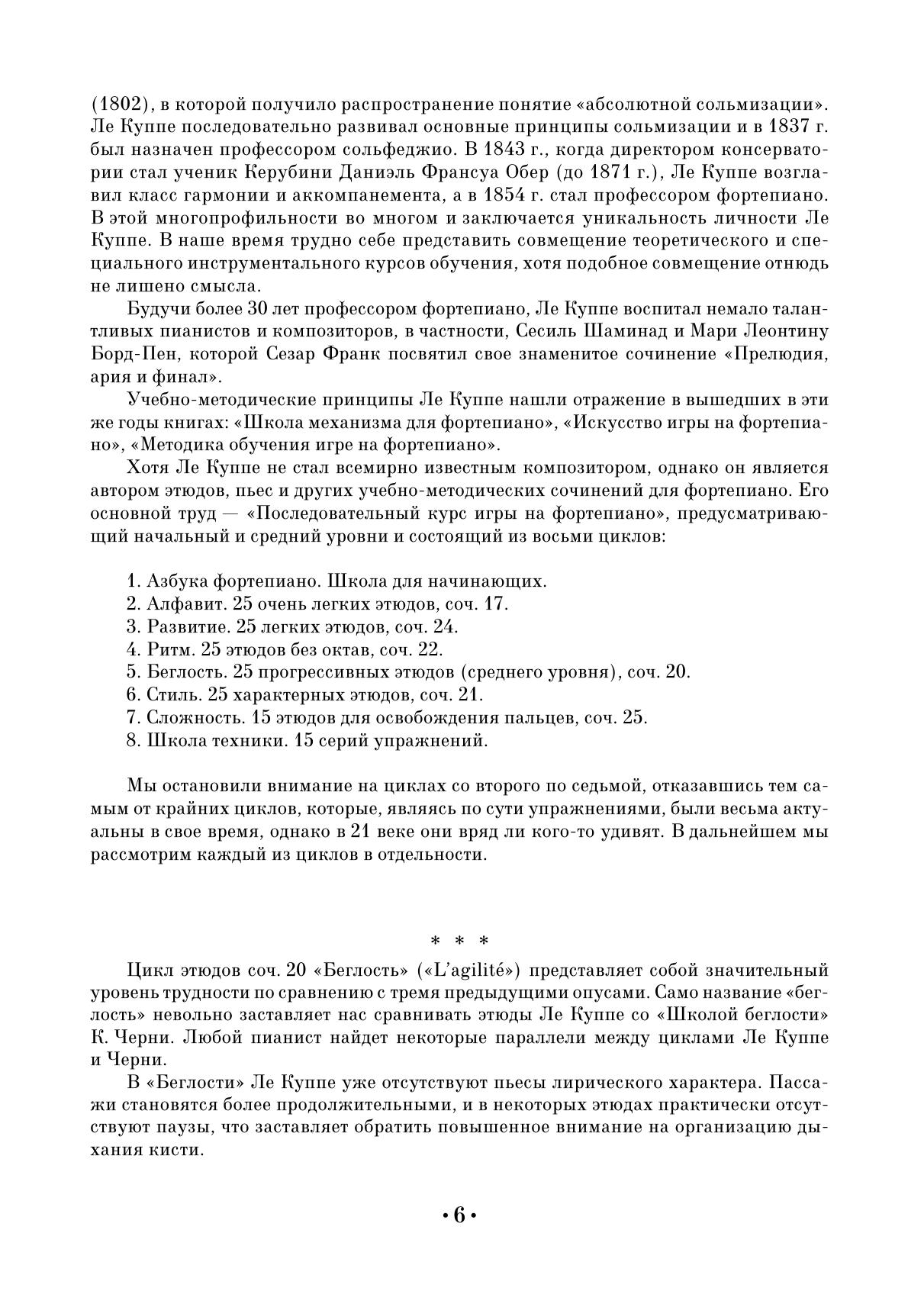 Представленный в настоящем сборнике цикл этюдов «Беглость» представляет одну из частей основного труда Ле Куппе под названием «Последовательный курс игры на фортепиано». Предназначенный для юных пианистов, этот опус содержит в себе прогрессивные этюды среднего уровня.