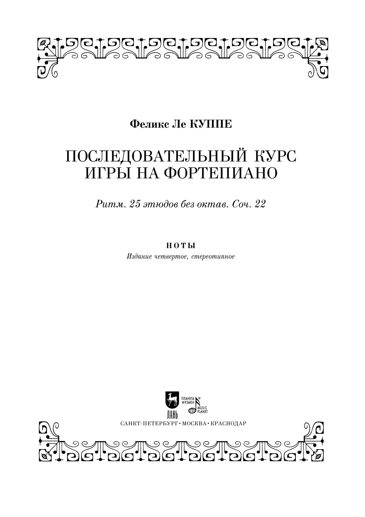 Последовательный курс игры на фортепиано. Ритм. 25 этюдов без октав. Соч. 22