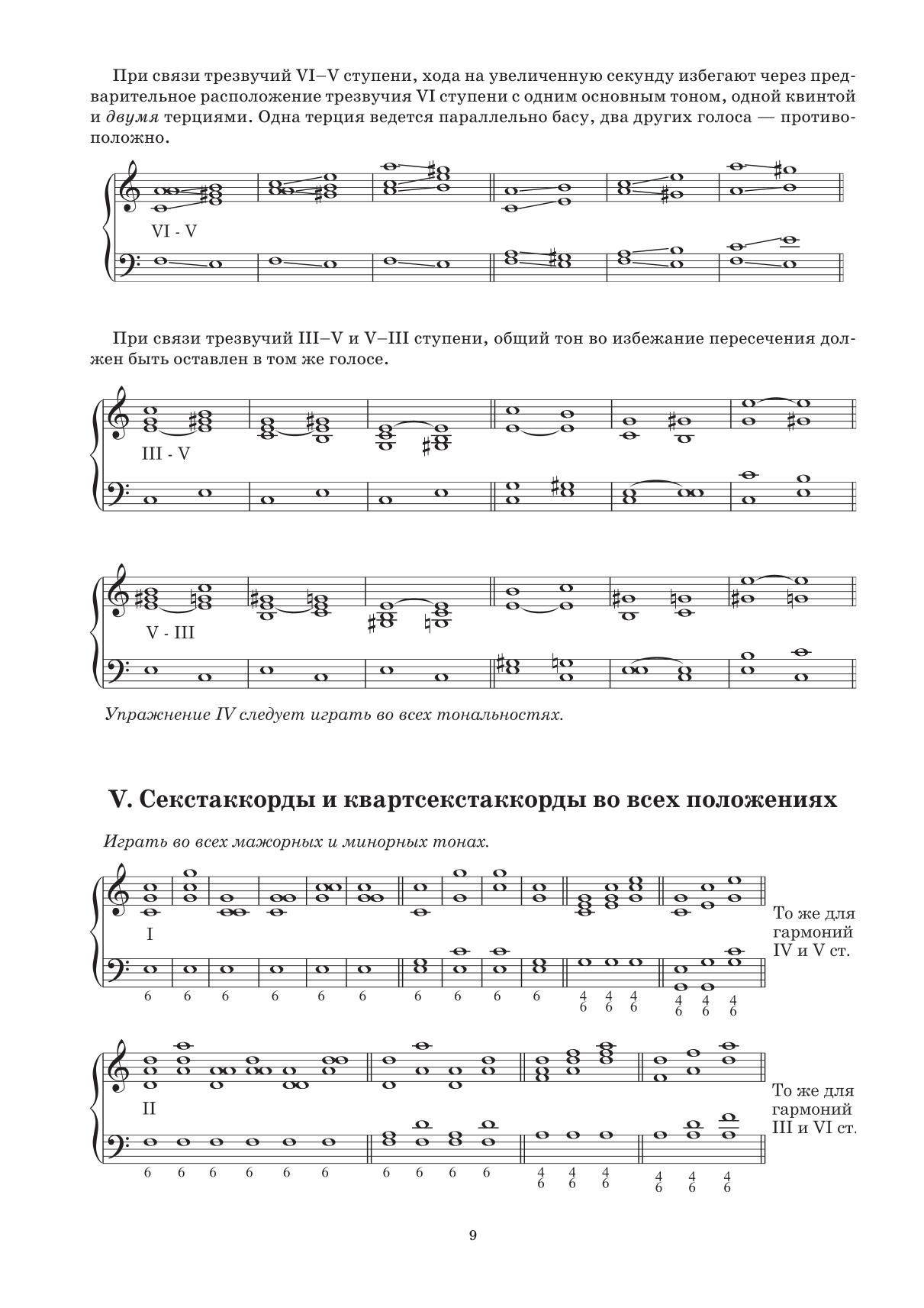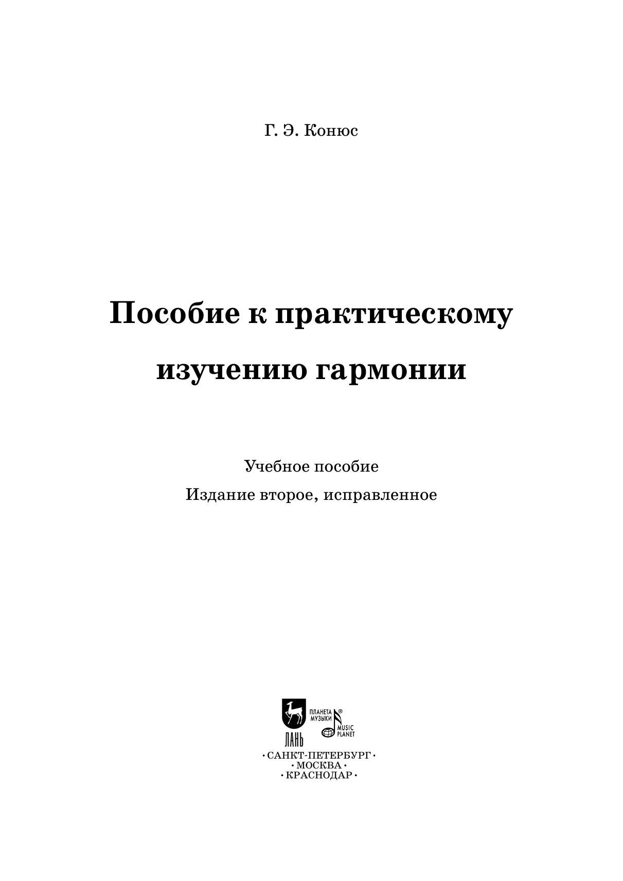 The guide to the practical study of harmony by G.E. Conus (1862–1933), who taught harmony at the Moscow Conservatory, contains detailed piano exercises on all kinds for self-study. The book aims to help students in their harmony studies in their free time.