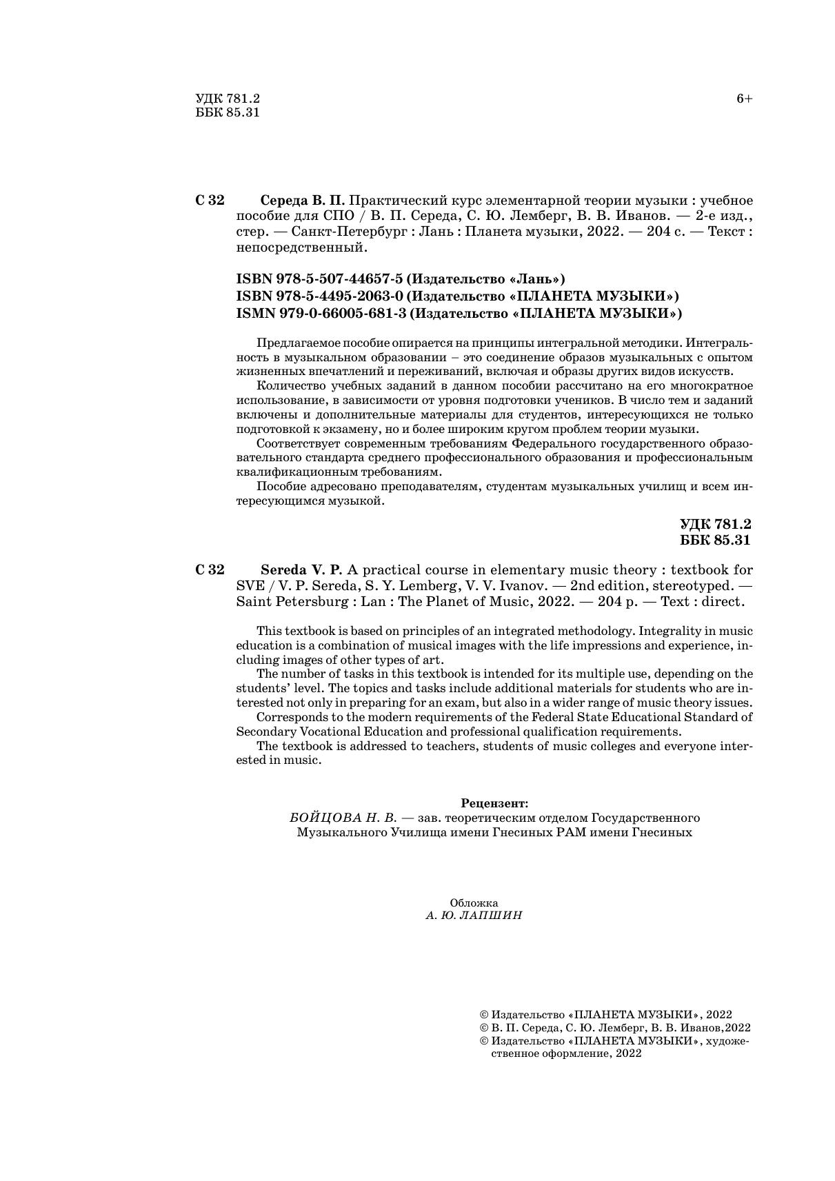 The number of tasks in this textbook is intended for its multiple use, depending on the students’ level. The topics and tasks include additional materials for students who are interested not only in preparing for an exam, but also in a wider range of music theory issues.