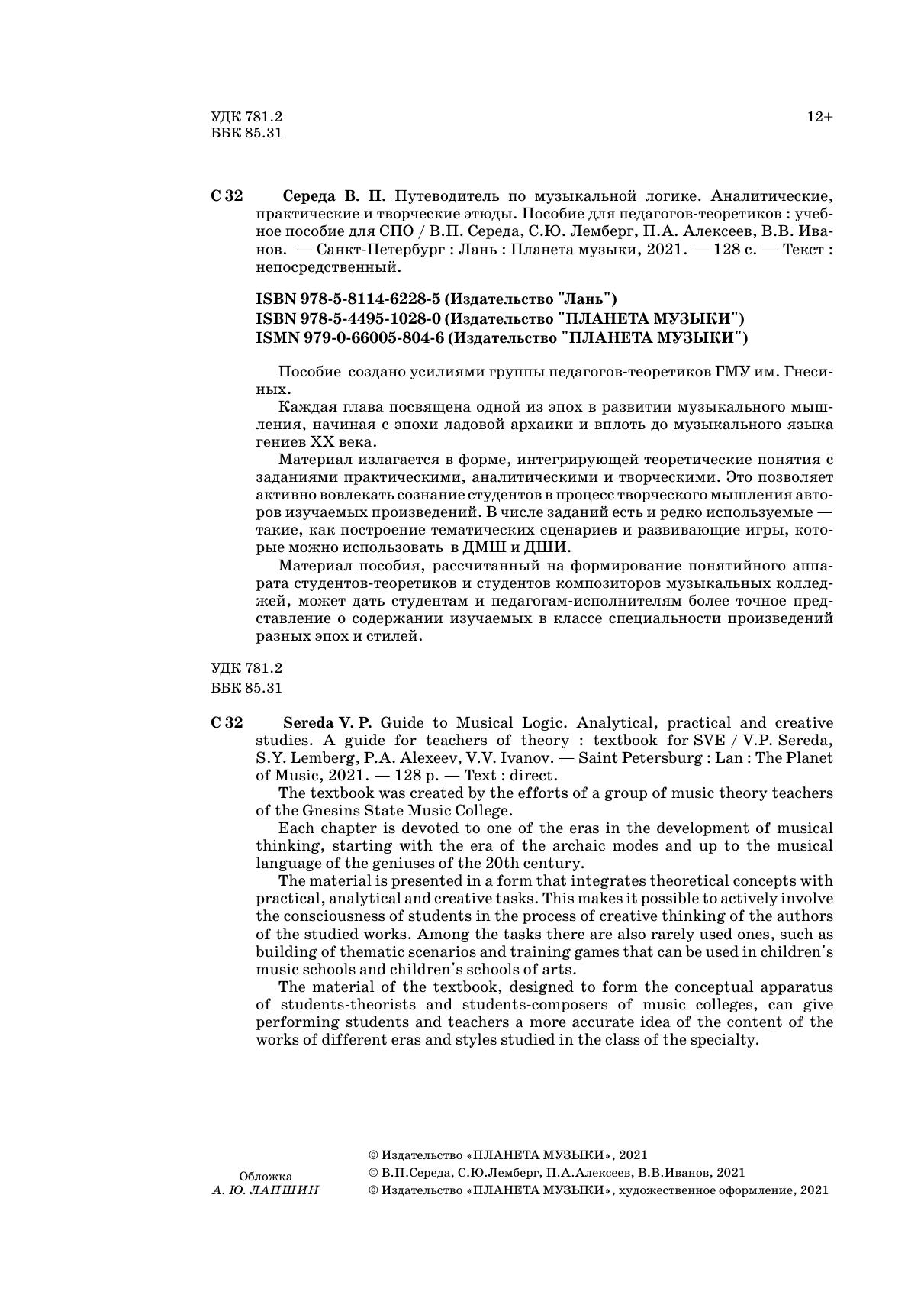 The material of the textbook, designed to form the conceptual apparatus of students-theorists and students-composers of music colleges, can give performing students and teachers a more accurate idea of the content of the works of different eras and styles studied in the class of the specialty.