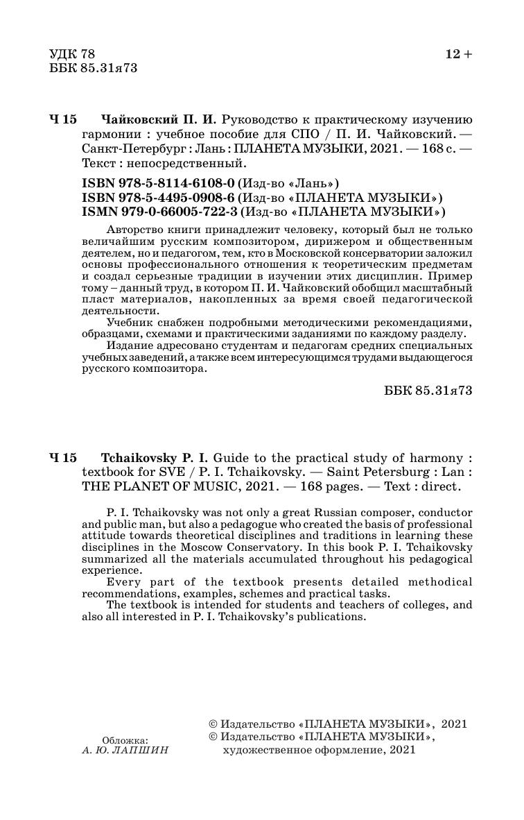 Авторство книги принадлежит человеку, который был не только величайшим русским композитором, дирижером и общественным деятелем, но и педагогом, тем, кто в Московской консерватории заложил основы профессионального отношения к теоретическим предметам и создал серьезные традиции в изучении этих дисциплин. Пример тому — данный труд, в котором П. И. Чайковский обобщил масштабный пласт материалов, накопленных за время своей педагогической деятельности.