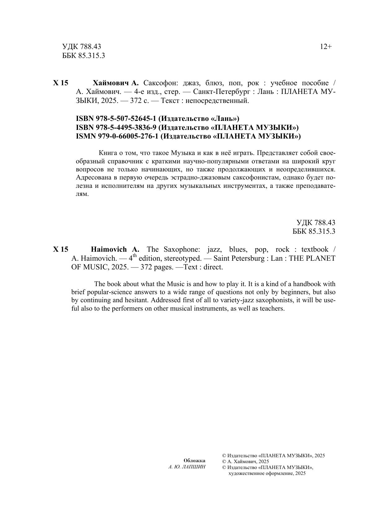 Книга о том, что такое Музыка и как в неё играть. Представляет собой своеобразный справочник с краткими научно-популярными ответами на широкий круг вопросов не только начинающих, но также продолжающих и неопределившихся. Адресована в первую очередь эстрадно-джазовым саксофонистам, однако будет полезна и исполнителям на других музыкальных инструментах, а также преподавателям.