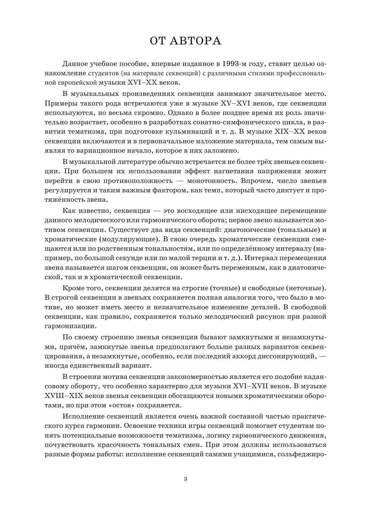 Издание предназначено для ознакомления учащихся старшего звена музыкальных колледжей с различными стилями профессиональной европейской музыки XVI – XX веков. Поскольку игра секвенций занимает важное место в практической части гармонии, студенты должны научиться правильно играть такого рода упражнения, работая над примерами из музыки и не забывая инструктивный материал.