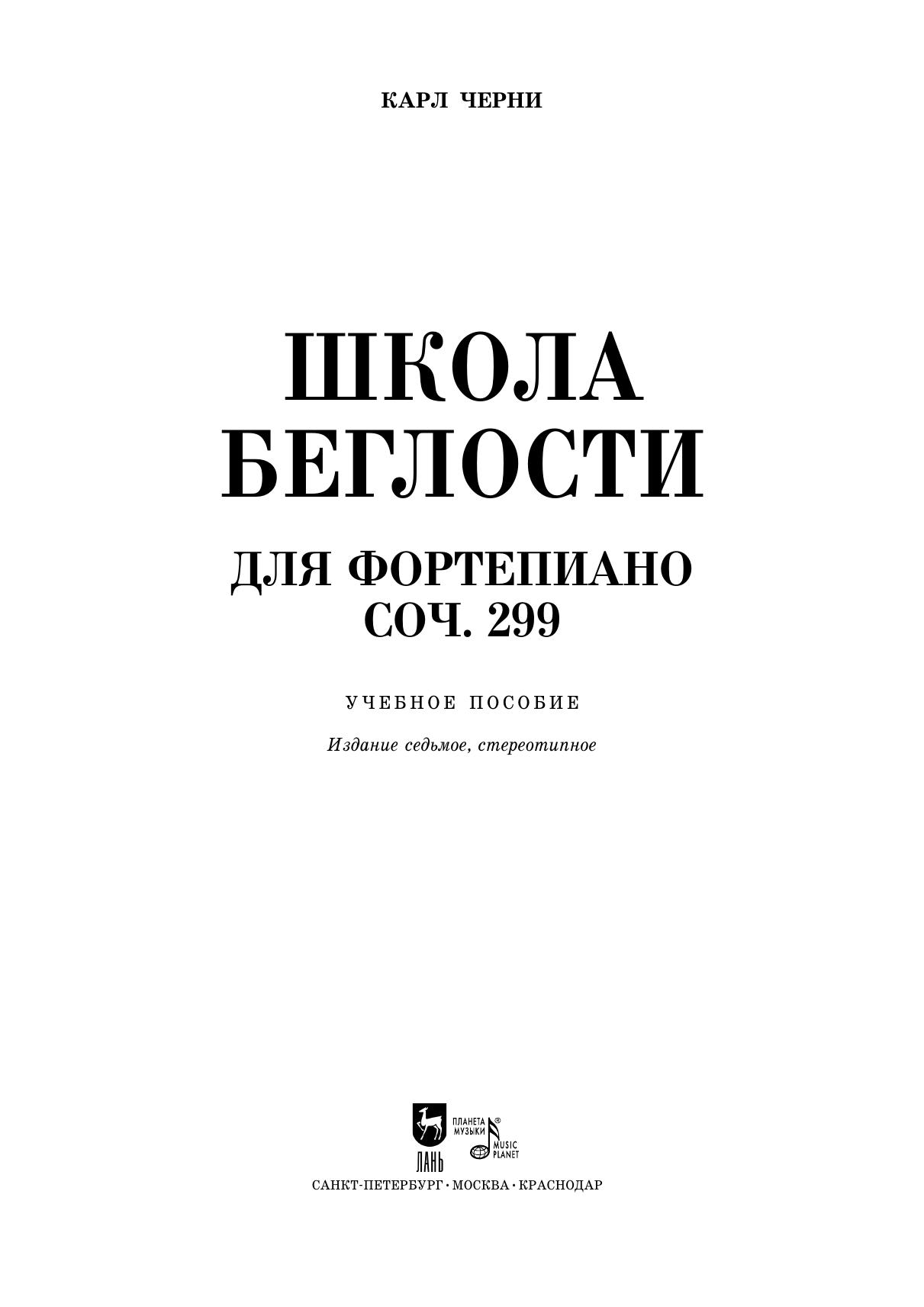 Сборник этюдов Карла Черни «Школа беглости» (op. 299) принадлежит к числу известнейших сочинений мирового уровня, направленных на развитие фортепианной техники. Этюды широко используются в учебной практике музыкальных школ, лицеев, училищ и являются неотъемлемой составляющей в воспитании пианистов-виртуозов. Художественная ценность и техническое разнообразие сочинений справедливо принесли автору всеобщее признание и славу.