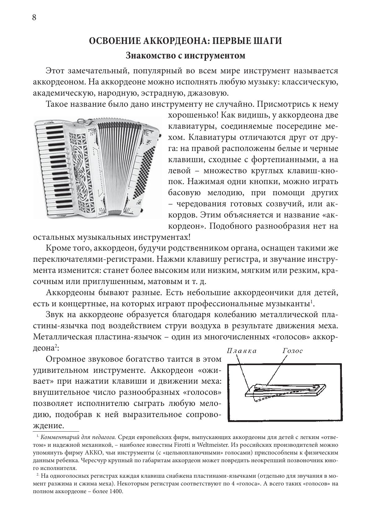 "Школа игры на аккордеоне" предлагает педагогам последовательное и целенаправленное изложение учебного процесса, ориентированное на дошкольный и младший школьный возраст.