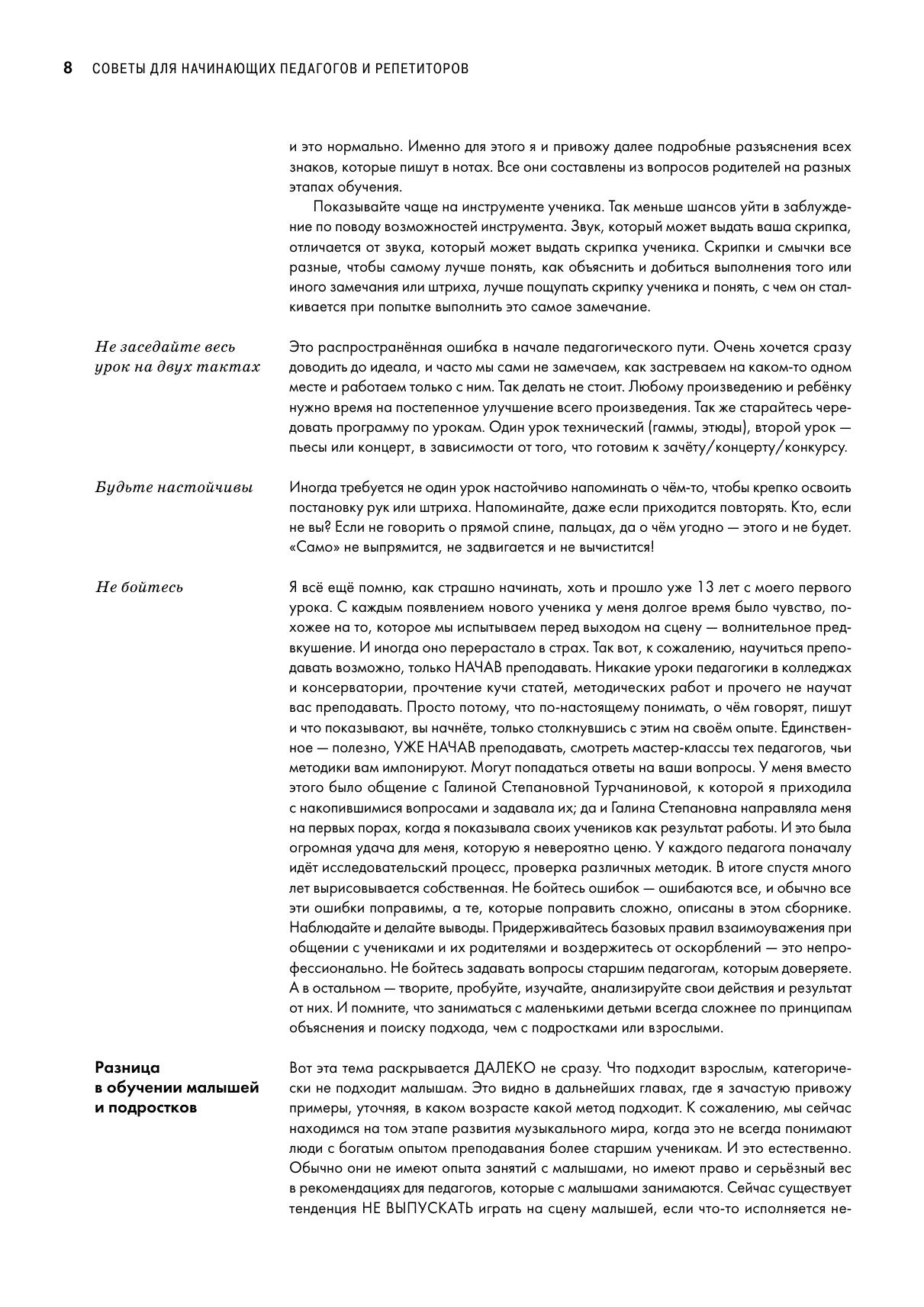 В этом издании представлены методы и способы самостоятельной работы для учащихся всех возрастов и рекомендации для начинающих педагогов и репетиторов. Советы составлены в продолжение методики Г. С. Турчаниновой и не только, направлены на облегчение и улучшение результативности домашних занятий. Здесь вы найдёте универсальные подсказки: за чем следить, как работать над теми или иными сложностями. В разделе для малышей всё изложено понятным и доступным языком. Сборник создан автором специально для родителей, учеников и начинающих педагогов. This edition presents methods and techniques of independent work for students of any age and recommendations for beginning teachers and tutors. The advice continues the G. S. Turchaninova methods and more, it aims to facilitate and improve the homework results. Here you will find general tips: what to watch out for, how to work on certain difficulties. The content of the sections for kids is presented in a clear and understandable way. The collection was written by the author especially for parents, students and beginning teachers.