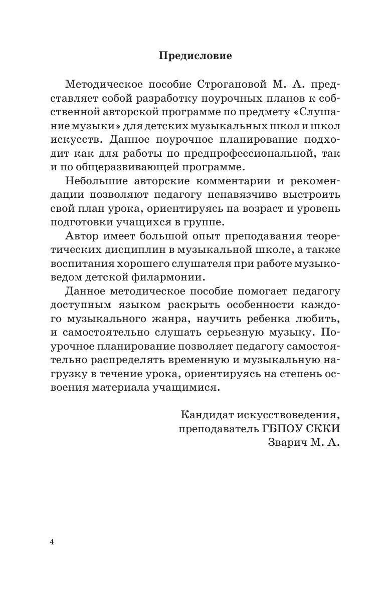 Данное методическое пособие помогает педагогу доступным языком раскрыть особенности каждого музыкального жанра, научить ребёнка любить и самостоятельно слушать серьёзную музыку. Поурочное планирование позволяет педагогу самостоятельно распределять временную и музыкальную нагрузку в течение урока, ориентируясь на степень освоения материала учащимися. This methodological textbook helps the teacher to explain to the children the features of different music genres, teach the children to love the serious music and know how to listen to it. Lesson planning allows the teacher to independently plan the time and music content within each lesson, considering the pupils’ level of mastering the material.