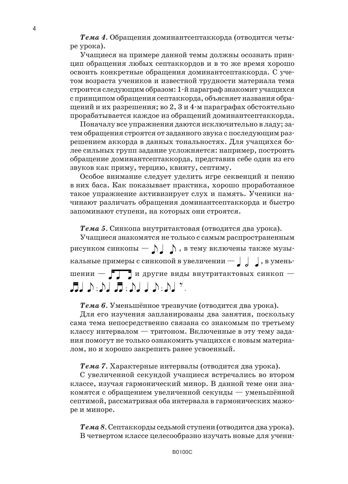 Учебное пособие организовано по тематическому принципу: включает теоретический материал 12 тем, упражнения и задания. Приводятся ритмические упражнения, произведения для слухового анализа. Пособие адресовано учащимся четвертых классов детских музыкальных школ и детских школ искусств, занимающихся по пятилетней программе обучения. Может быть использовано и по семилетней программе обучения.