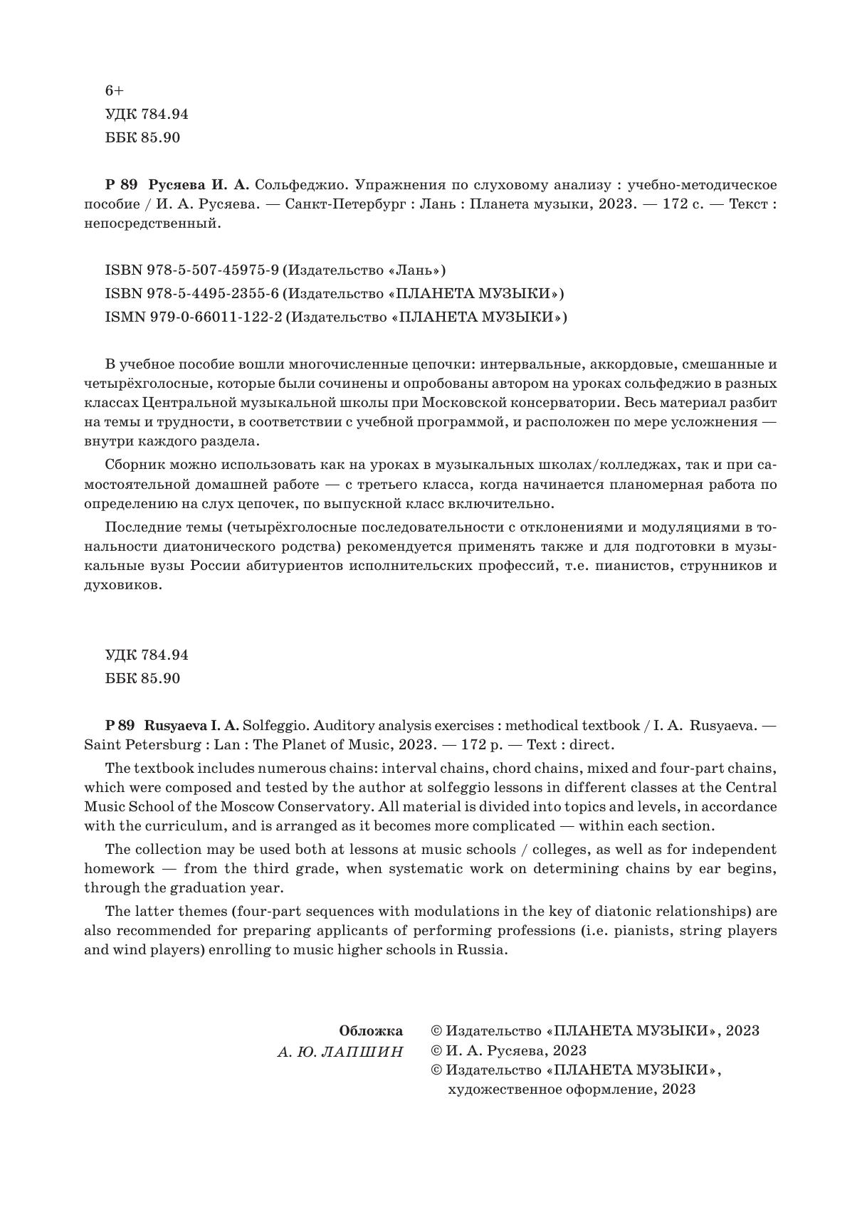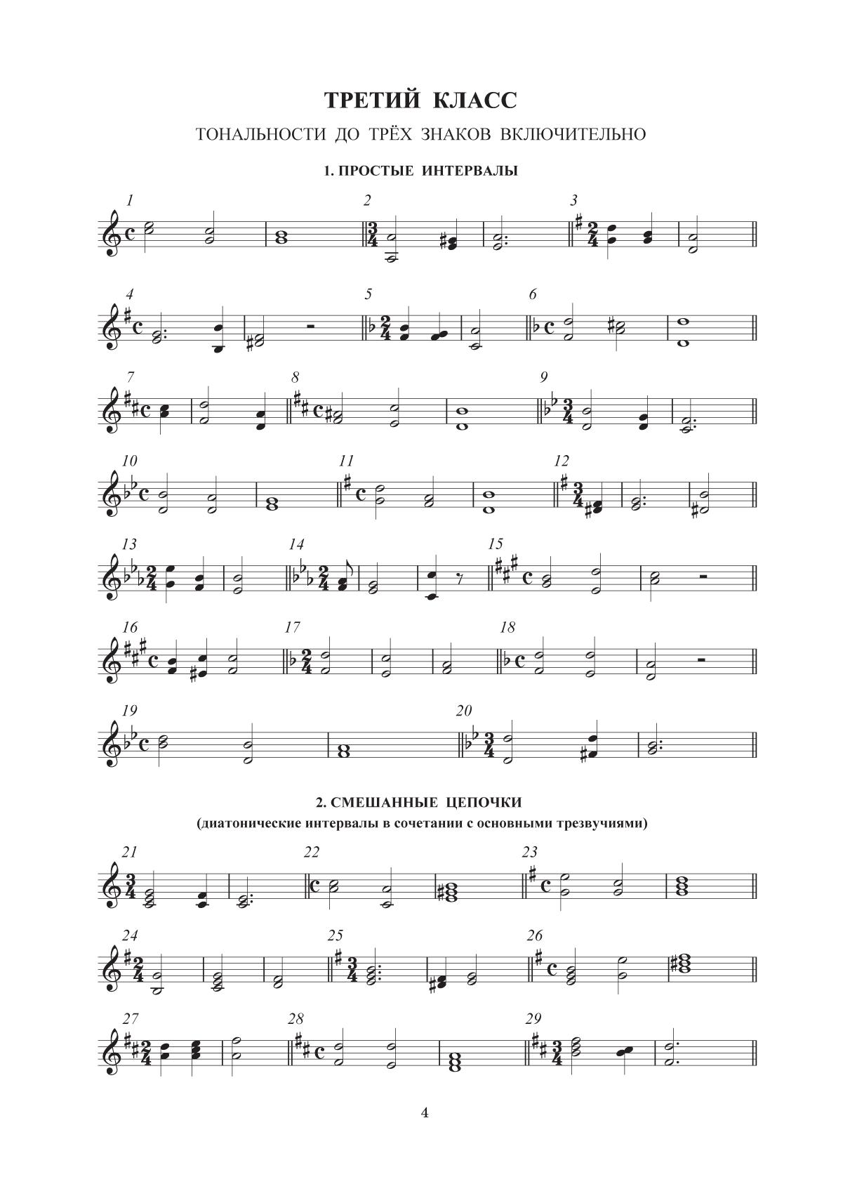 The textbook includes numerous chains: interval chains, chord chains, mixed and four-part chains, which were composed and tested by the author at solfeggio lessons in different classes at the Central Music School of the Moscow Conservatory. All material is divided into topics and levels, in accordance with the curriculum, and is arranged as it becomes more complicated — within each section.