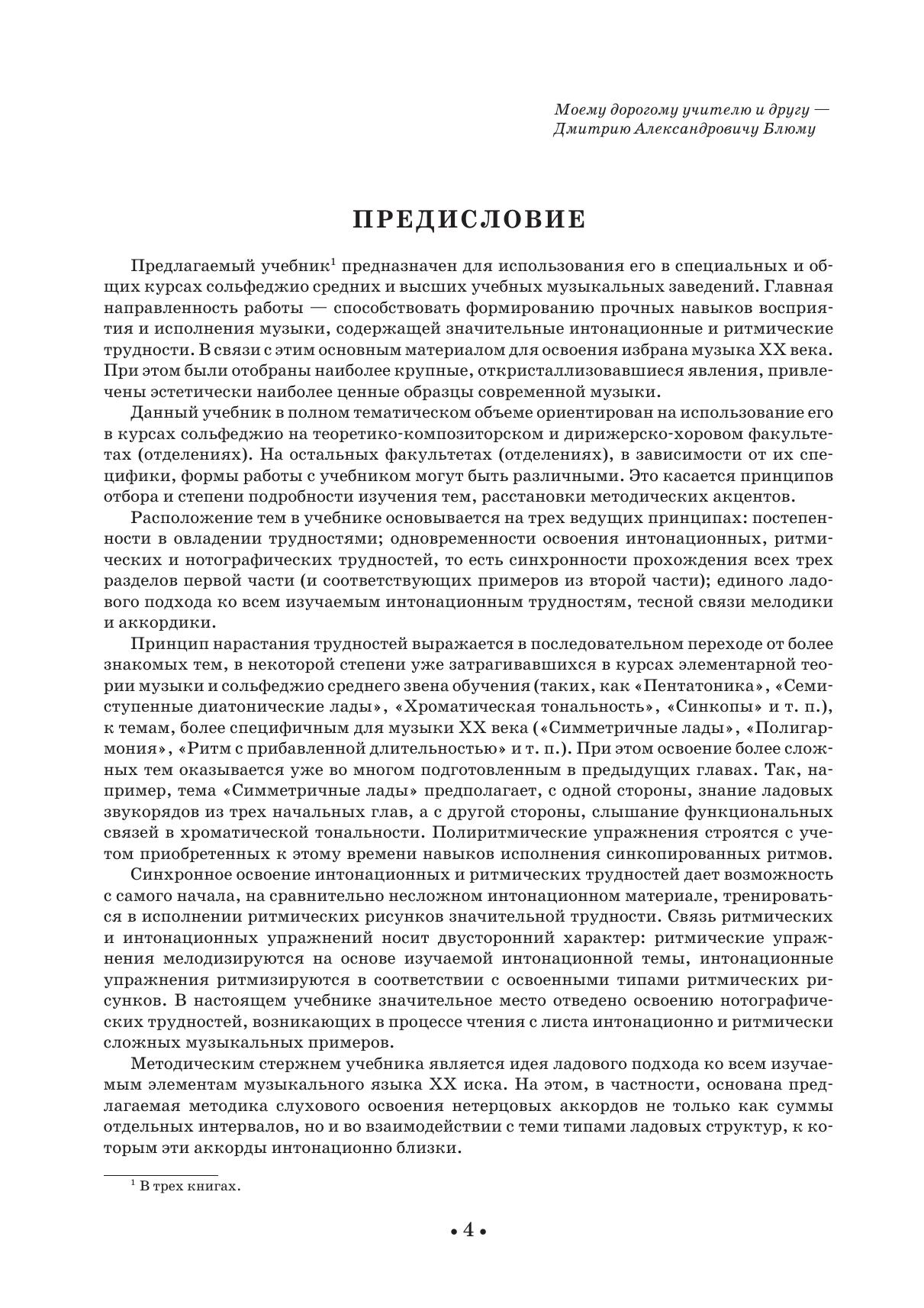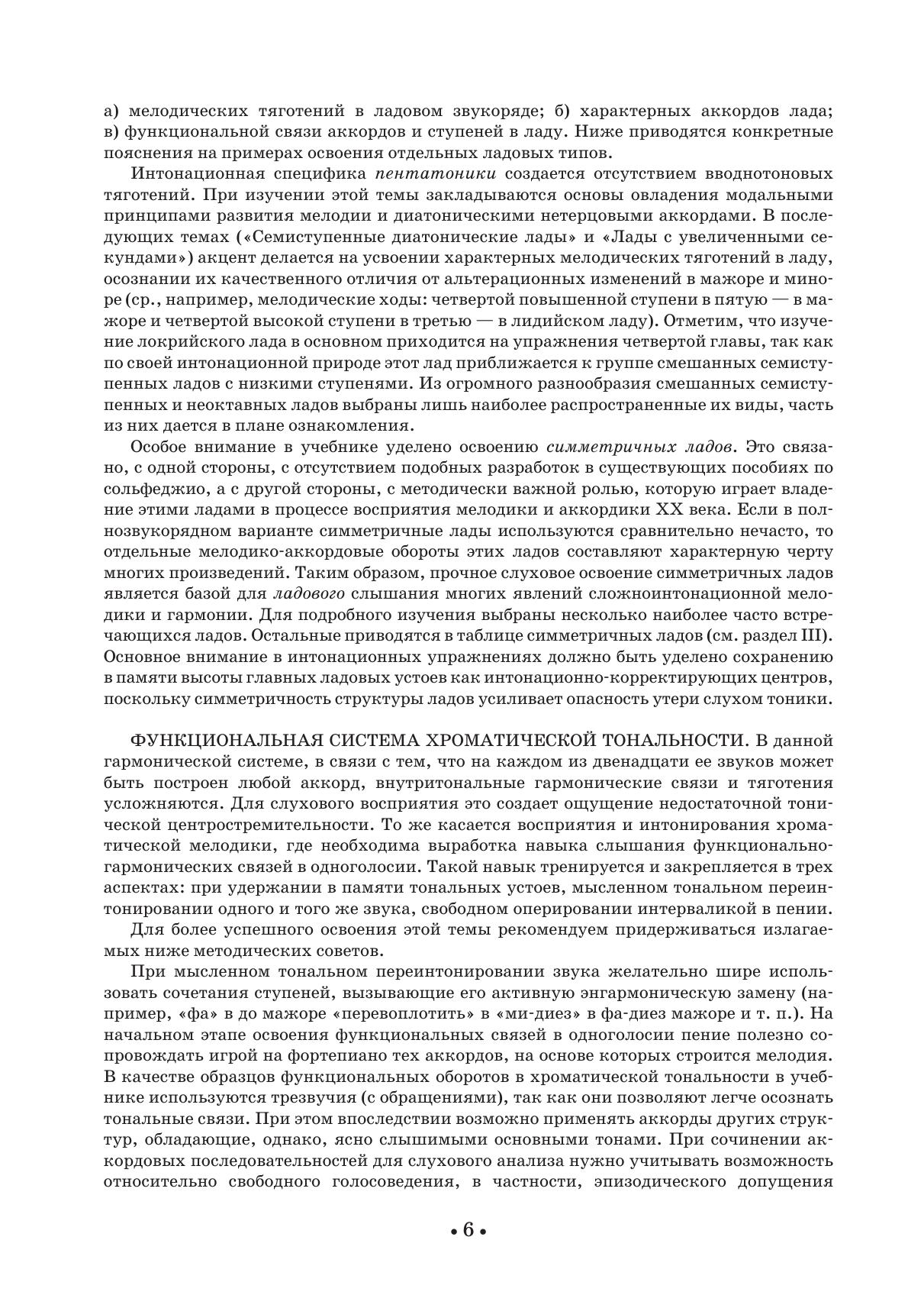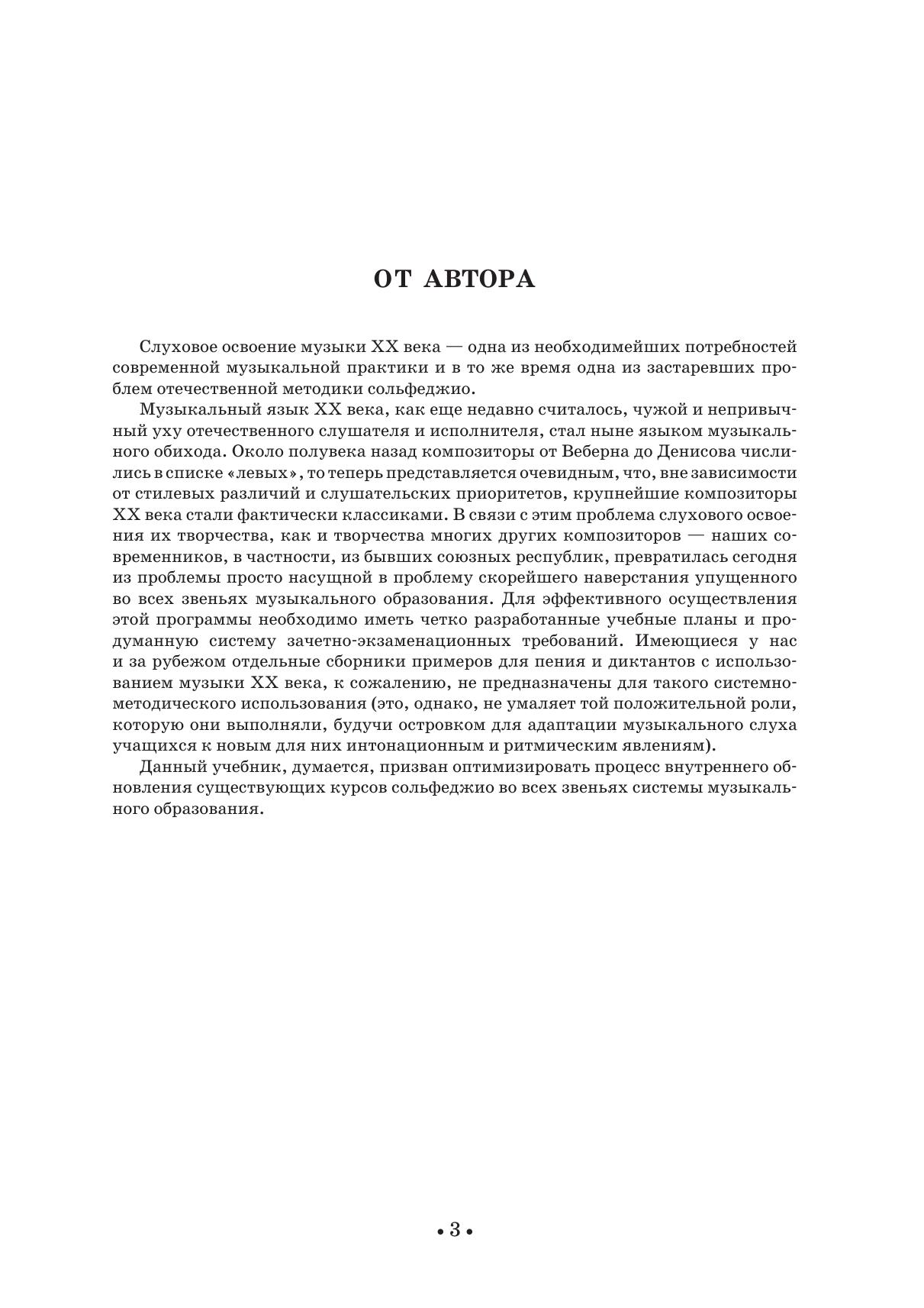 Данное издание представляет собой первый в отечественной и зарубежной практике комплексный учебник по слуховому освоению современной музыки. В нем отобраны и систематизированы характерные трудности освоения музыкального языка ХХ века (его ладовые, мелодические структуры, аккордика, ритмика). Специальное внимание уделено проблемам чтения с листа современного нотного текста. Автором разработаны специальные комплексы интонационных, ритмических и нотографических упражнений, собраны соответствующие примеры из музыки композиторов ХХ в. Материал учебника может быть использован во всех формах работы по сольфеджио: пении, слуховом анализе, музыкальном диктанте. Часть подобранных музыкальных примеров предназначена также для использования абитуриентами при подготовке к вступительному экзамену по сольфеджио в вуз. Соответствует современным требованиям Федерального государственного образовательного стандарта среднего профессионального образования и профессиональным квалификационным требованиям. Для учащихся музыкальных училищ. The current edition represents the first comprehensive textbook on the auditory perception of contemporary music in domestic and foreign practice. The author has selected and systematized the characteristic complexities of mastering the musical language of the 20th century (its modal and melodic structures, chords, rhythms). Special attention is paid to the issues of sight-reading of contemporary music. The author has developed special sets of intonational, rhythmic and notographic exercises, selected relevant examples from the music by 20th century composers. The textbook material may be used in all forms of solfeggio: singing, auditory analysis, musical dictation. Some of the selected musical examples are also intended for use by applicants while preparing for the higher school enrolling exam in solfeggio. Corresponds to the modern requirements of the Federal State Educational Standard of Secondary Vocational Education and professional qualification requirements. For students of music colleges.