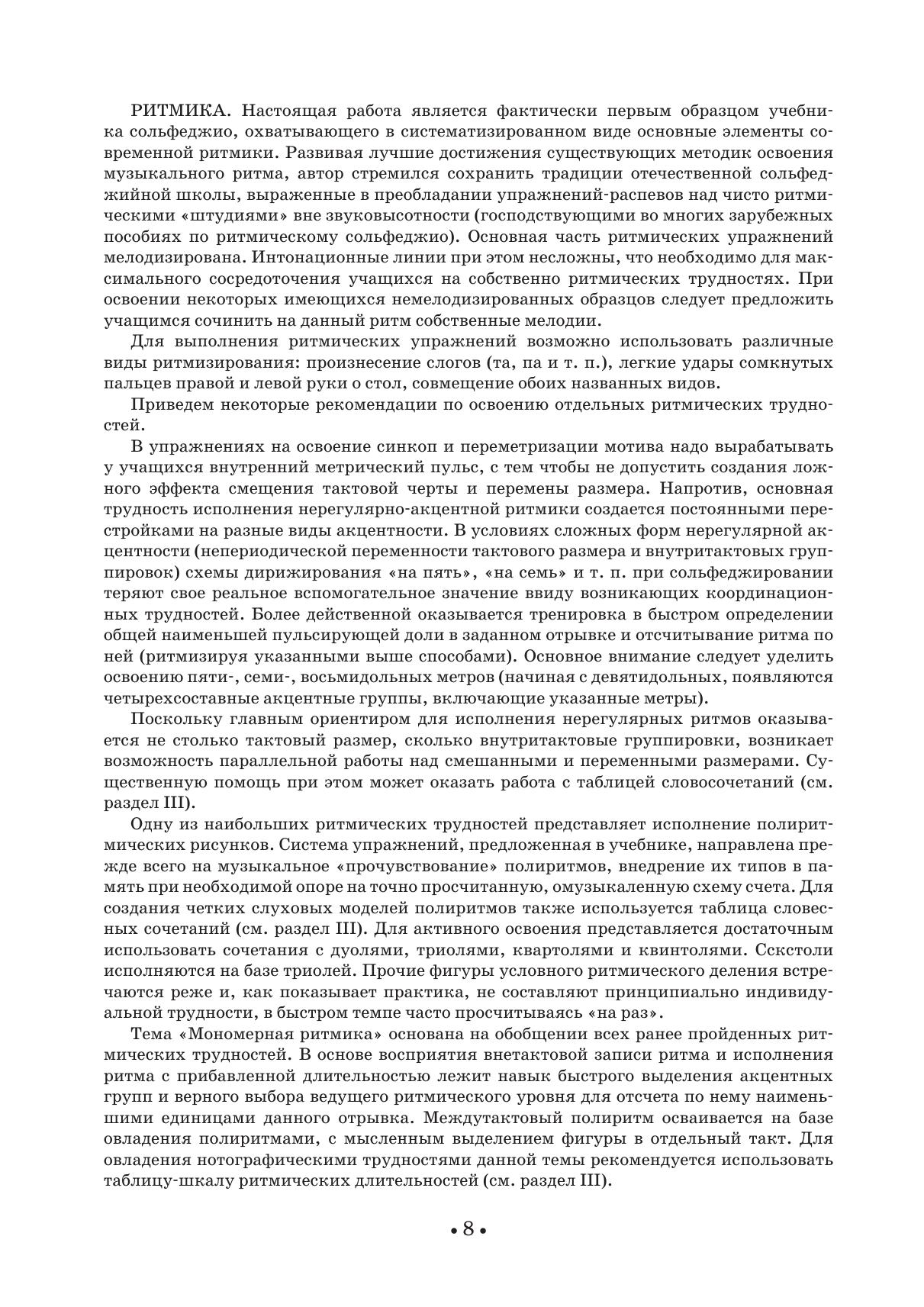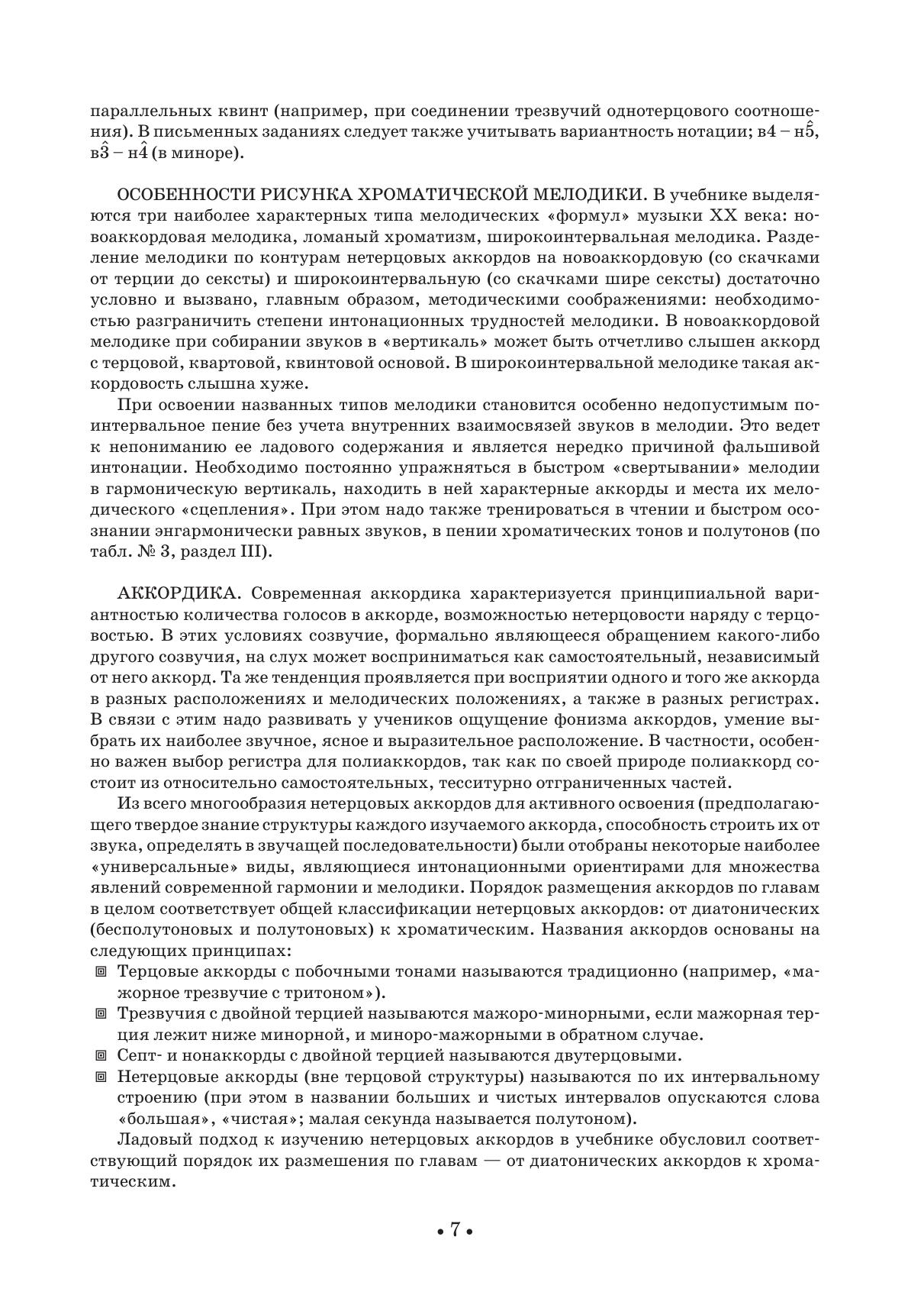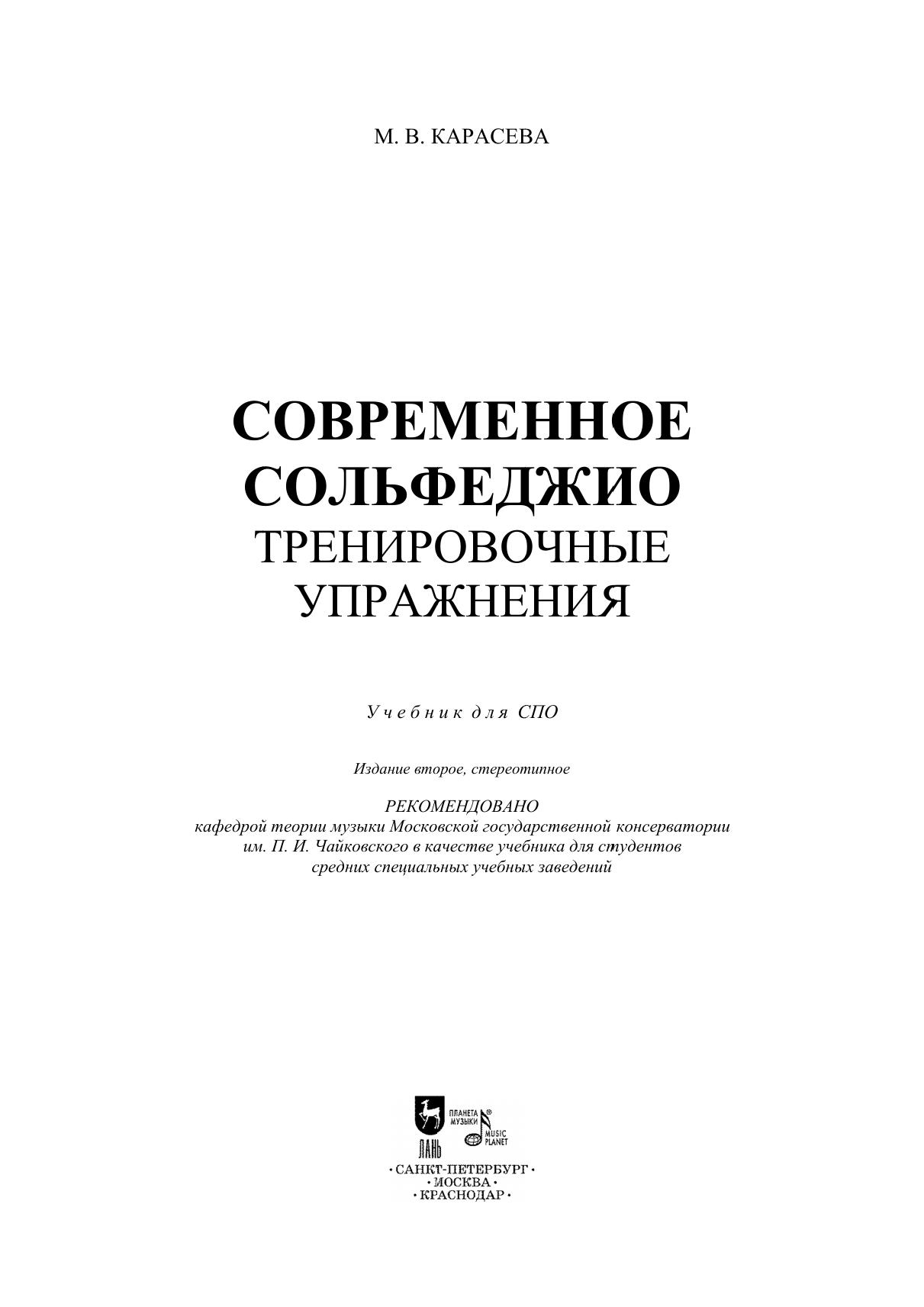 Данное издание представляет собой первый в отечественной и зарубежной практике комплексный учебник по слуховому освоению современной музыки. В нем отобраны и систематизированы характерные трудности освоения музыкального языка ХХ века (его ладовые, мелодические структуры, аккордика, ритмика). Специальное внимание уделено проблемам чтения с листа современного нотного текста. Автором разработаны специальные комплексы интонационных, ритмических и нотографических упражнений, собраны соответствующие примеры из музыки композиторов ХХ в. Материал учебника может быть использован во всех формах работы по сольфеджио: пении, слуховом анализе, музыкальном диктанте. Часть подобранных музыкальных примеров предназначена также для использования абитуриентами при подготовке к вступительному экзамену по сольфеджио в вуз. Соответствует современным требованиям Федерального государственного образовательного стандарта среднего профессионального образования и профессиональным квалификационным требованиям. Для учащихся музыкальных училищ. The current edition represents the first comprehensive textbook on the auditory perception of contemporary music in domestic and foreign practice. The author has selected and systematized the characteristic complexities of mastering the musical language of the 20th century (its modal and melodic structures, chords, rhythms). Special attention is paid to the issues of sight-reading of contemporary music. The author has developed special sets of intonational, rhythmic and notographic exercises, selected relevant examples from the music by 20th century composers. The textbook material may be used in all forms of solfeggio: singing, auditory analysis, musical dictation. Some of the selected musical examples are also intended for use by applicants while preparing for the higher school enrolling exam in solfeggio. Corresponds to the modern requirements of the Federal State Educational Standard of Secondary Vocational Education and professional qualification requirements. For students of music colleges.