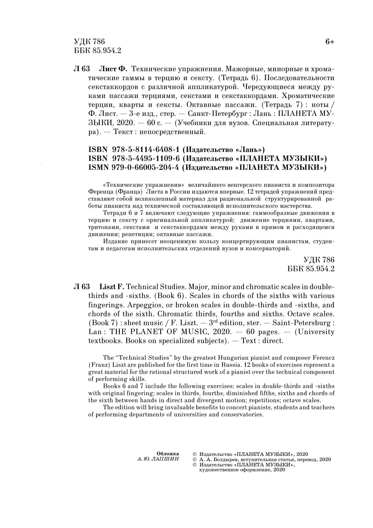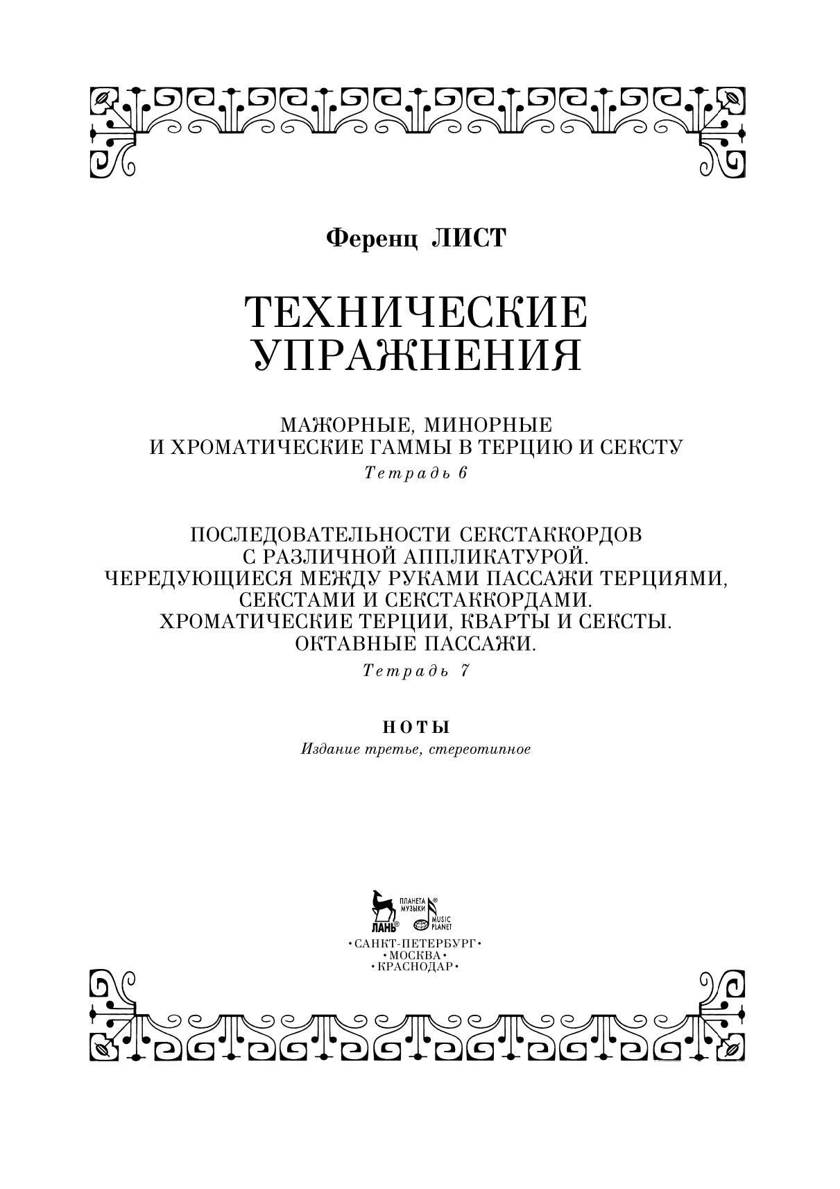 «Технические упражнения» величайшего венгерского пианиста и композитора Ференца (Франца) Листа в России издаются впервые. 12 тетрадей упражнений представляют собой великолепный материал для рациональной структурированной работы пианиста над технической составляющей исполнительского мастерства.
