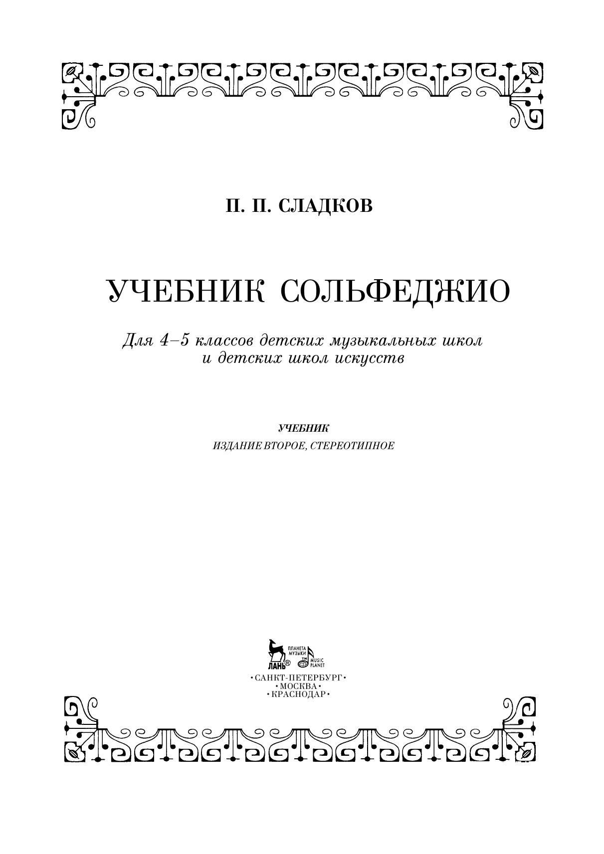 Учебник сольфеджио. Для 4–5 классов детских музыкальных школ и детских школ искусств