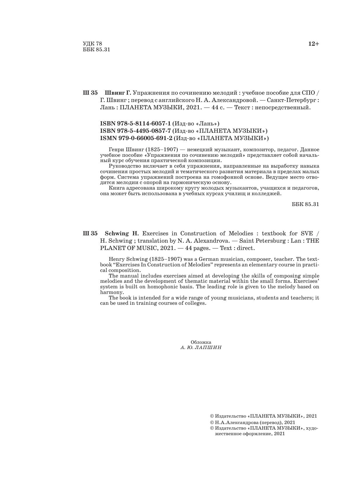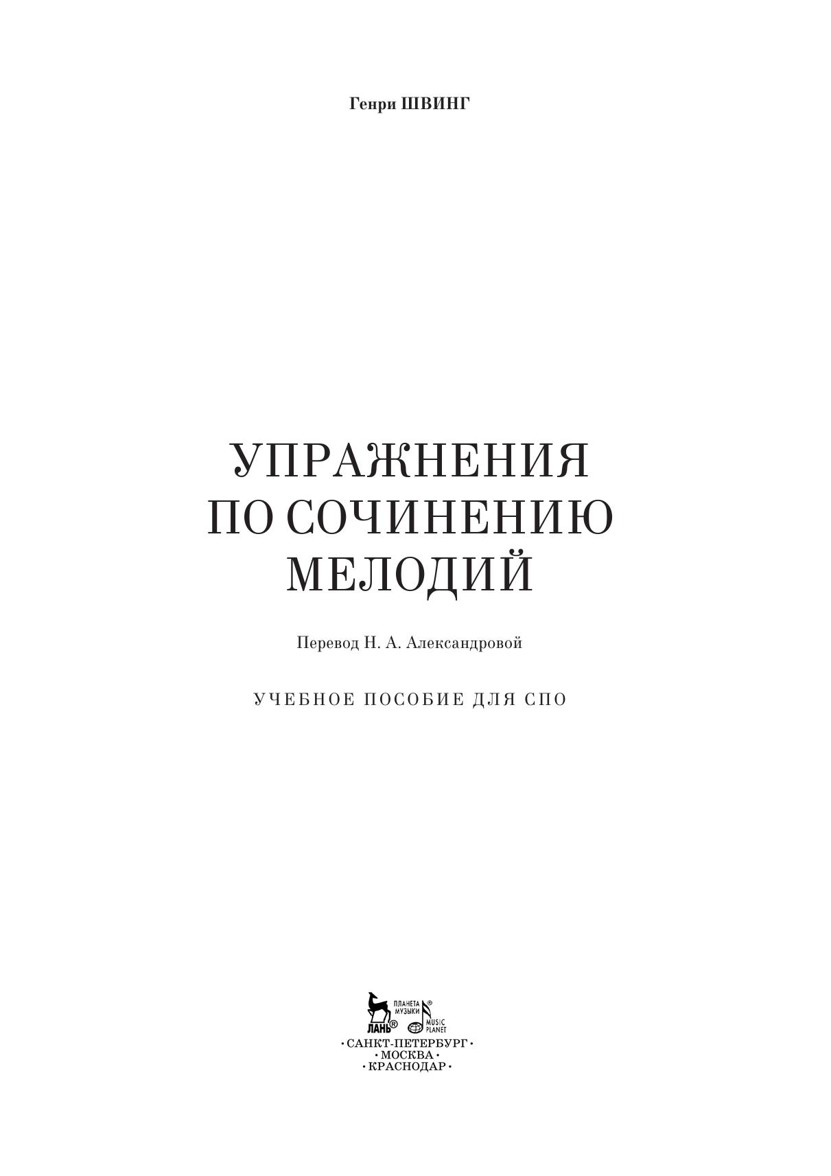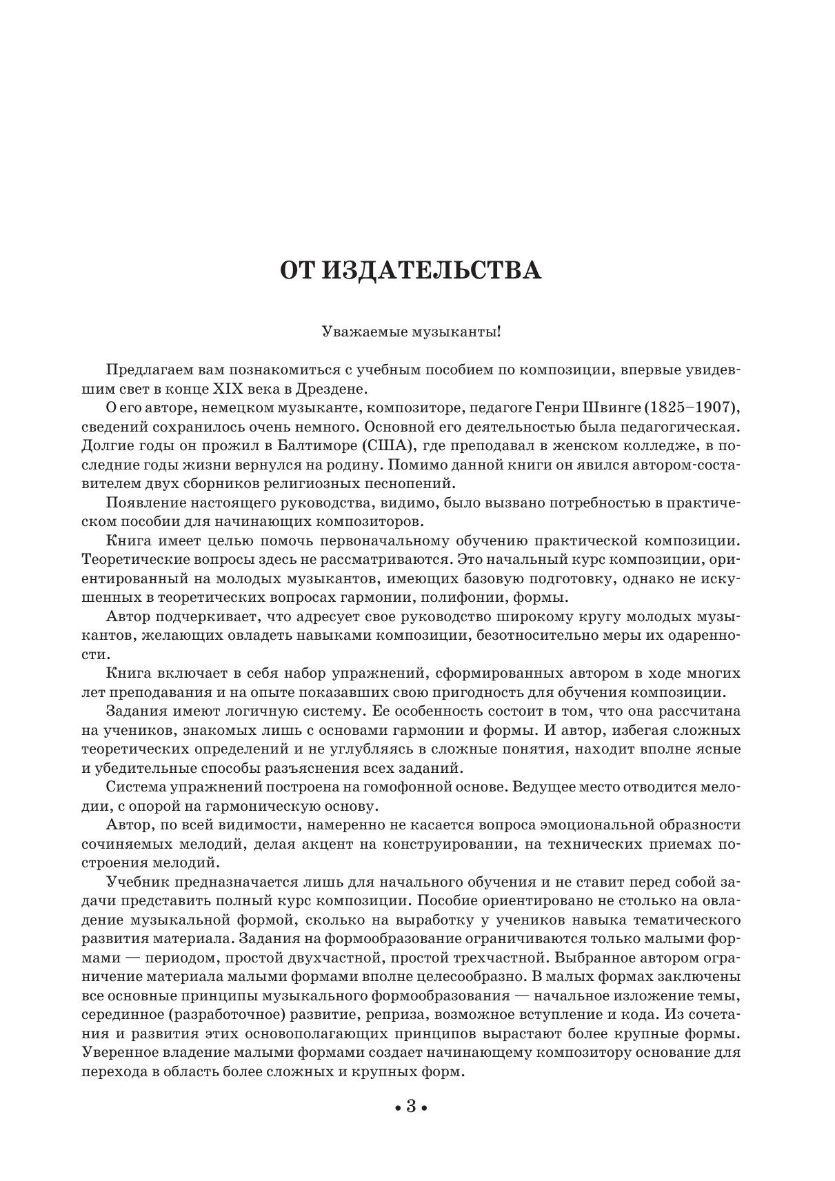 Генри Швинг (1825 – 1907) – немецкий музыкант, композитор, педагог. Данное учебное пособие «Упражнения по сочинению мелодий» представляет собой начальный курс обучения практической композиции.