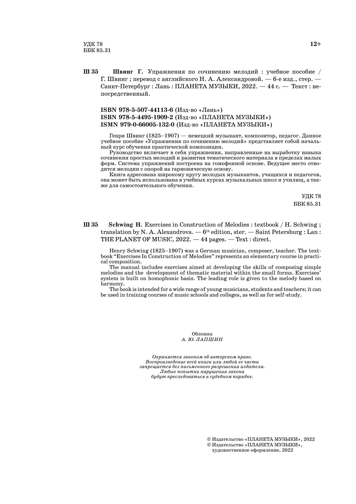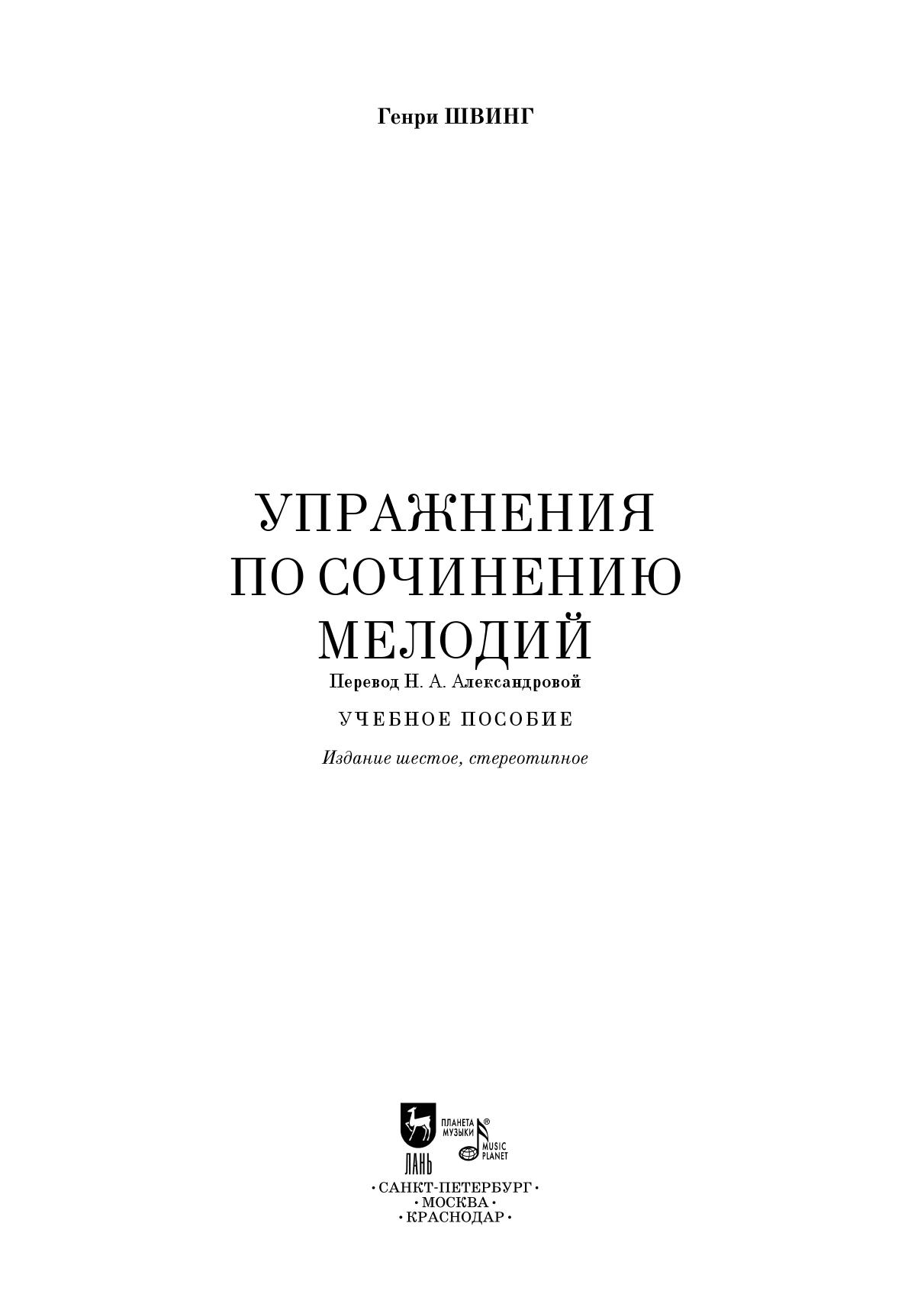 Генри Швинг (1825 – 1907) – немецкий музыкант, композитор, педагог. Данное учебное пособие «Упражнения по сочинению мелодий» представляет собой начальный курс обучения практической композиции.