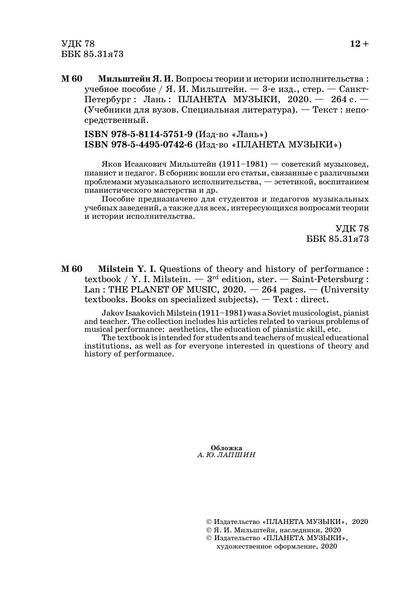 Яков Исаакович Мильштейн (1911–1981) — советский музыковед, пианист и педагог. В сборник вошли его статьи, связанные с различными проблемами музыкального исполнительства, — эстетикой, воспитанием пианистического мастерства и др.