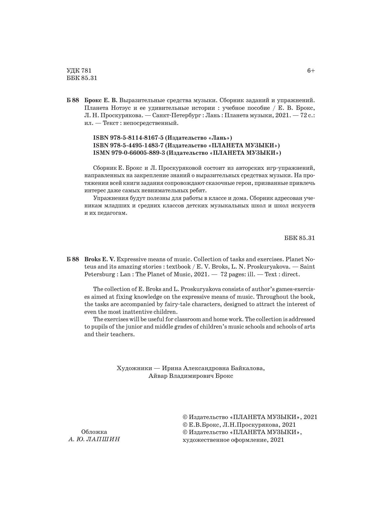 The collection of E. Broks and L. Proskuryakova consists of author’s games-exercises aimed at fixing knowledge on the expressive means of music. Throughout the book, the tasks are accompanied by fairy-tale characters, designed to attract the interest of even the most inattentive children.