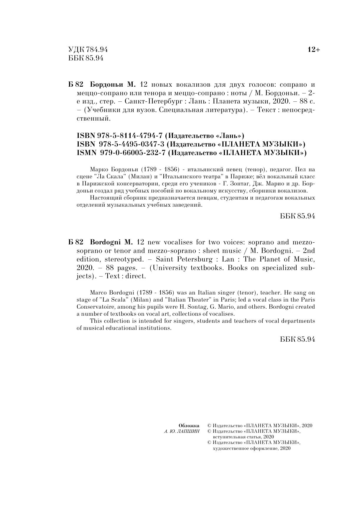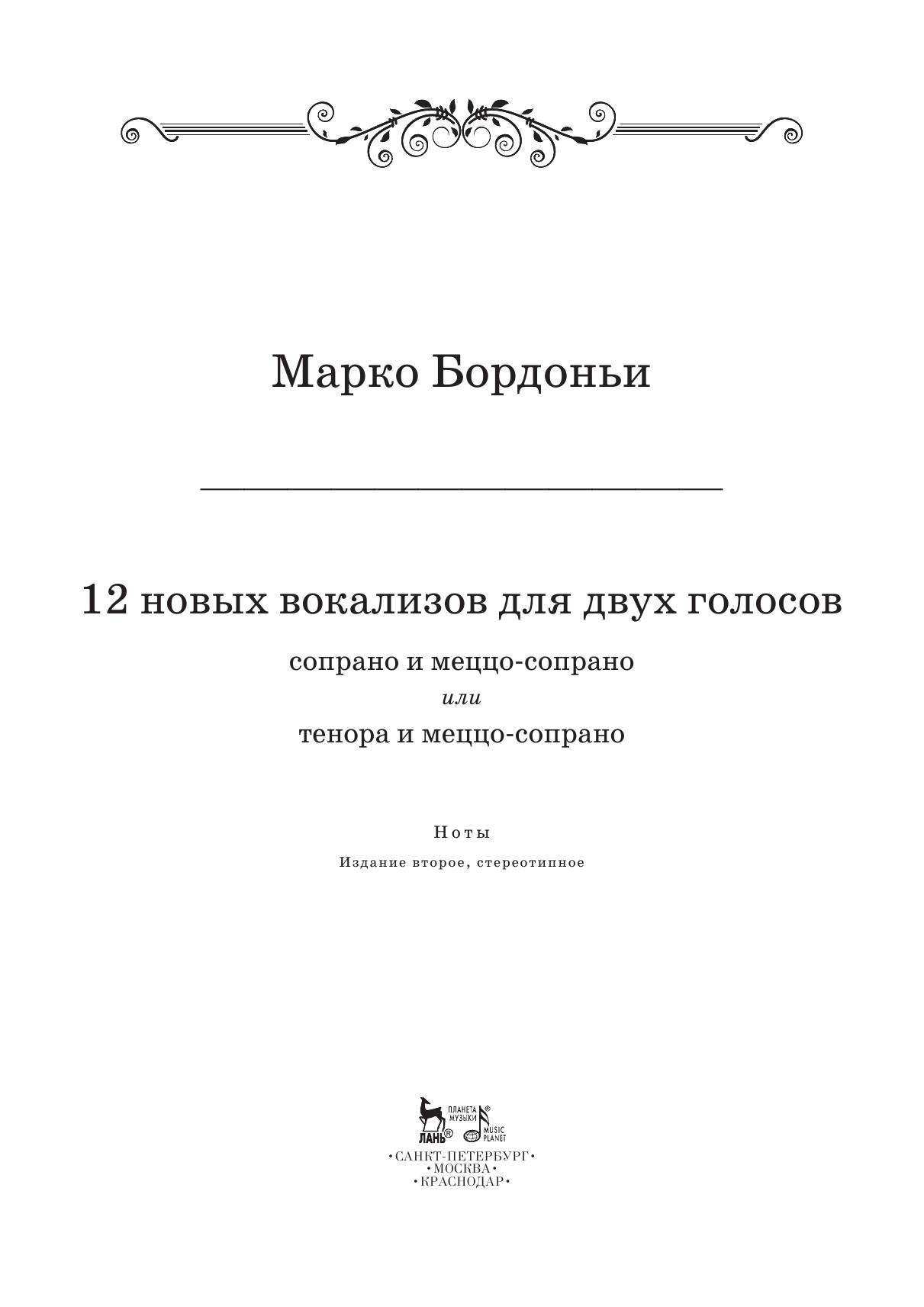 12 новых вокализов для двух голосов: сопрано и меццо-сопрано или тенора и меццо-сопрано