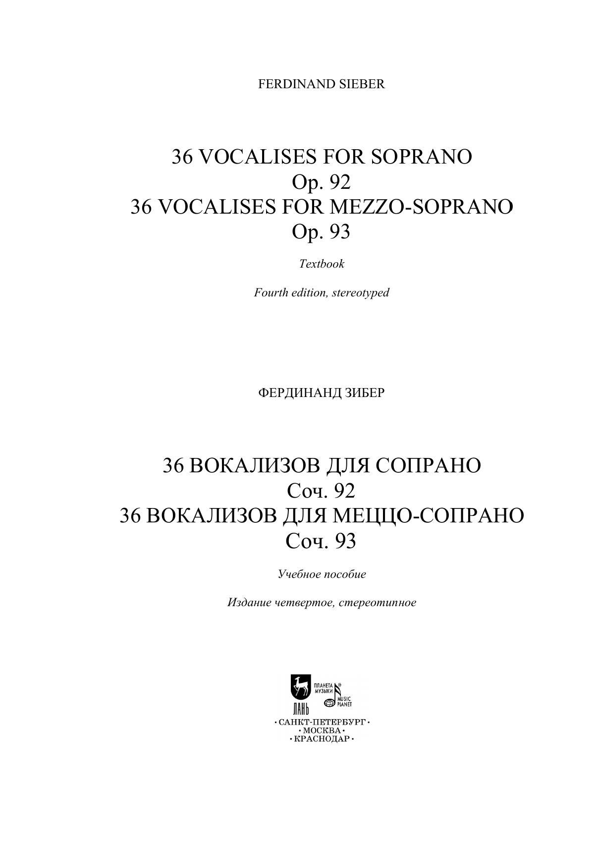 36 вокализов для сопрано, соч. 92. 36 вокализов для меццо-сопрано, соч. 93