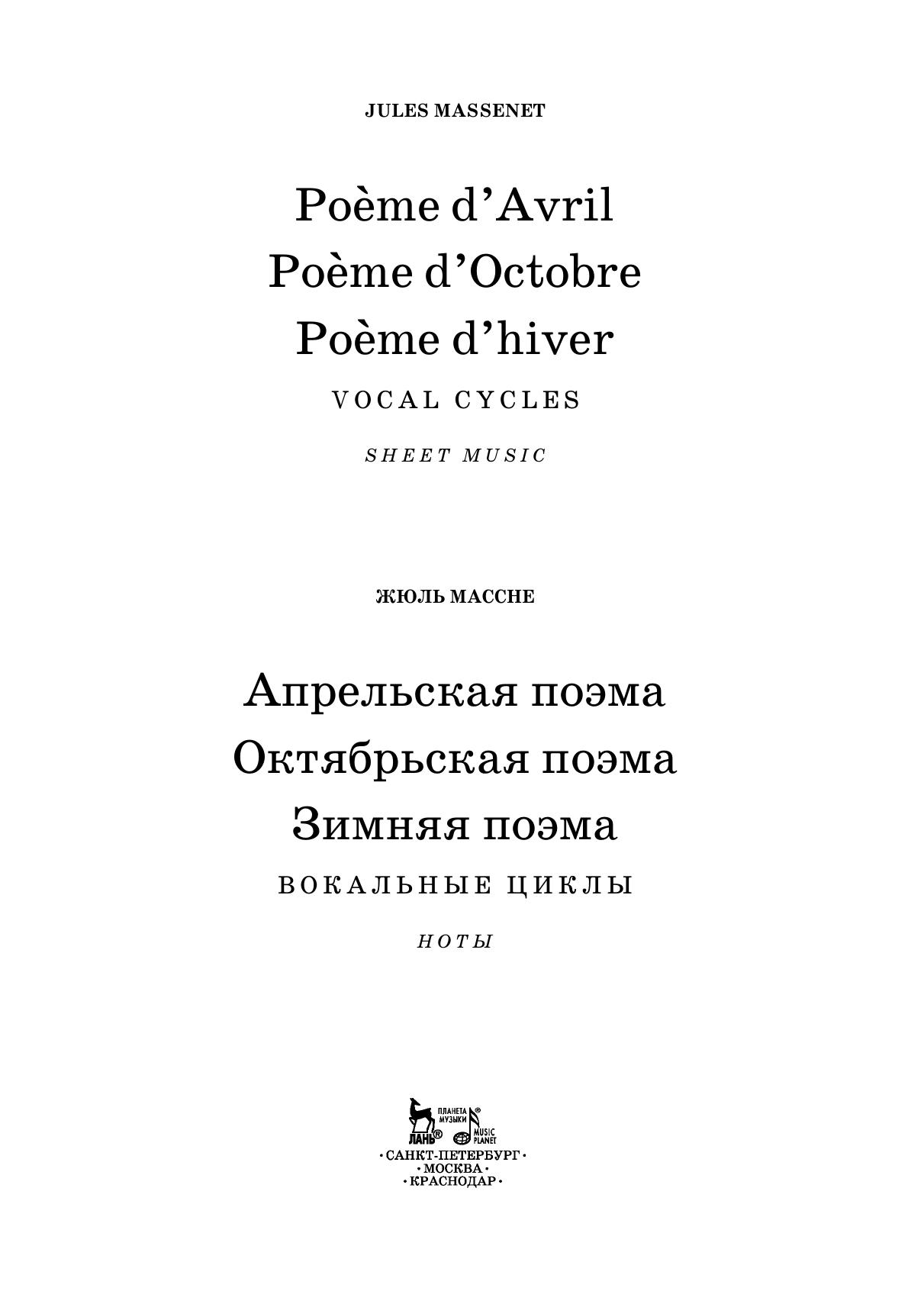 Перу французского композитора Ж. Массне (1842-1912) принадлежит около 200 романсов. Среди ранних камерно-вокальных сочинений особенно выделяется цикл романсов "Апрельская поэма" (1866) на слова А. Сильвестра, где проступают характерные черты стиля композитора — преобладание образов мечтательной любовной лирики. Подобные образы развиваются в вокальном цикле "Октябрьская поэма" (1871) на слова П. Коллена. Цикл "Зимняя поэма" (1882) также был написан на стихи Сильвестра. Его содержание во многом перекликается с "Апрельской поэмой".