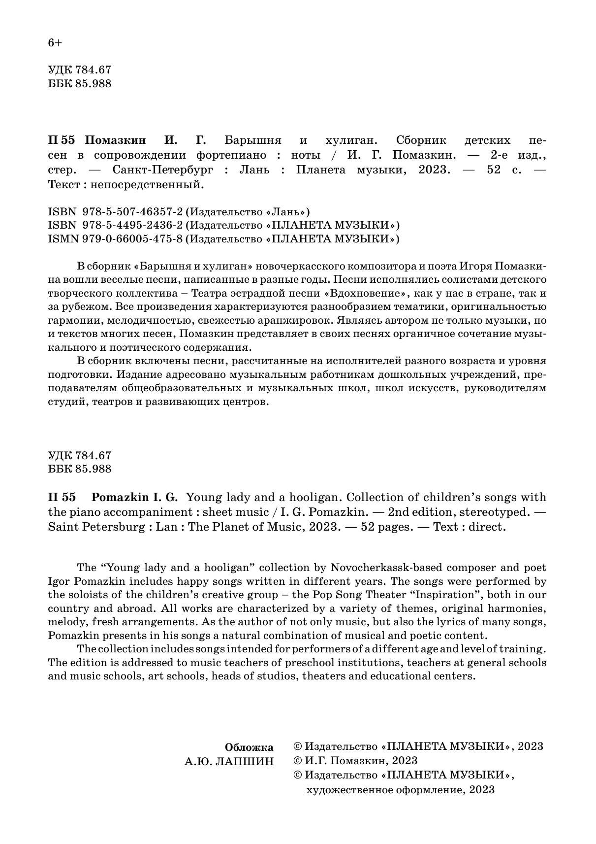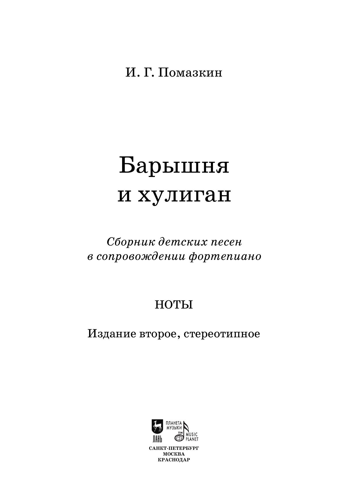 В сборник «Барышня и хулиган» новочеркасского композитора и поэта Игоря Помазкина вошли произведения, написанные в разные годы. Песни исполнялись солистами детского творческого коллектива – Театра эстрадной песни «Вдохновение», как у нас в стране, так и за рубежом. Все произведения характеризуются разнообразием тематики, оригинальностью гармонии, мелодичностью, свежестью аранжировок. Являясь автором не только музыки, но и текстов многих песен, Помазкин представляет в своих песнях органичное сочетание музыкального и поэтического содержания.