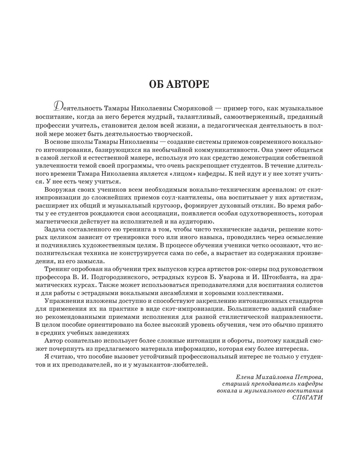Представленное методическое пособие предназначено для студентов высших и средних специальных учебных заведений, проходящих подготовку в сфере эстрадно-джазового вокала. Она также представляет профессиональный интерес для широкого круга лиц, интересующихся вопросами и проблемами современного вокального искусства.